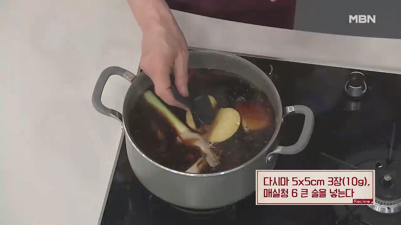 ▶다시마 5X5cm 3장(10g), 매실청 6큰술을 넣어 줍니다.