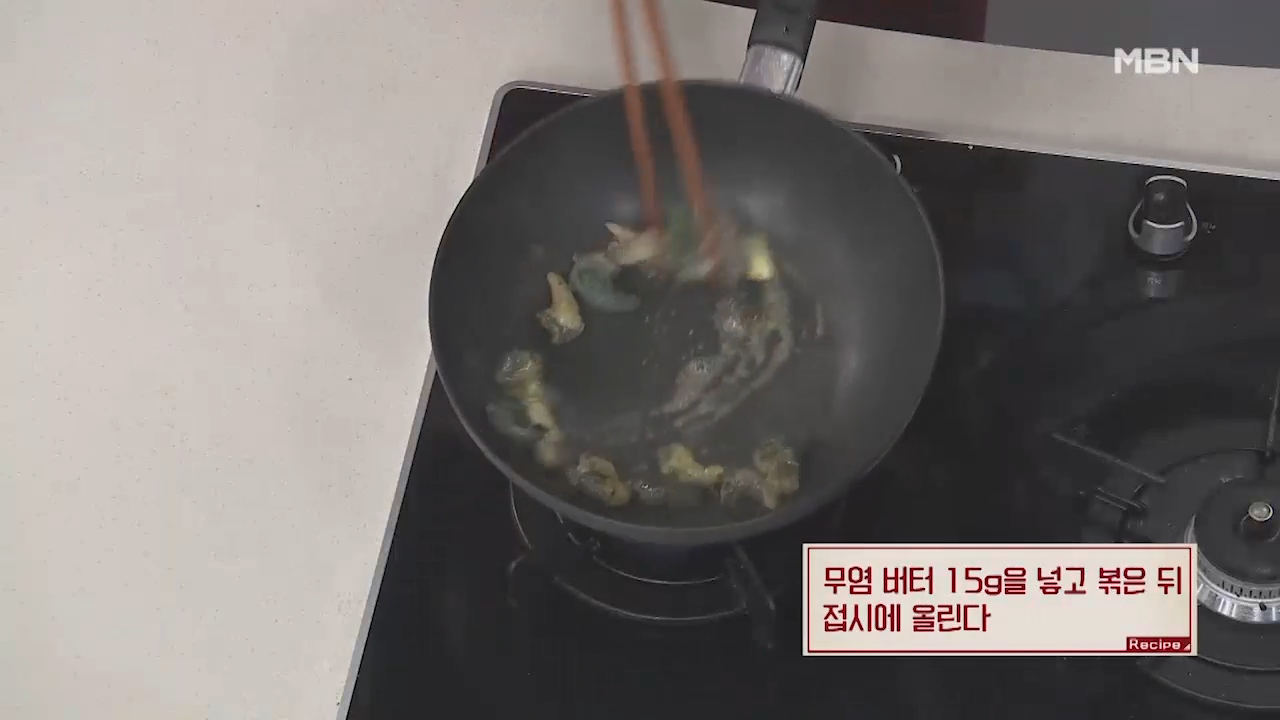 ▶무염 버터 15g을 넣고 볶은 뒤 접시에 올려 줍니다.