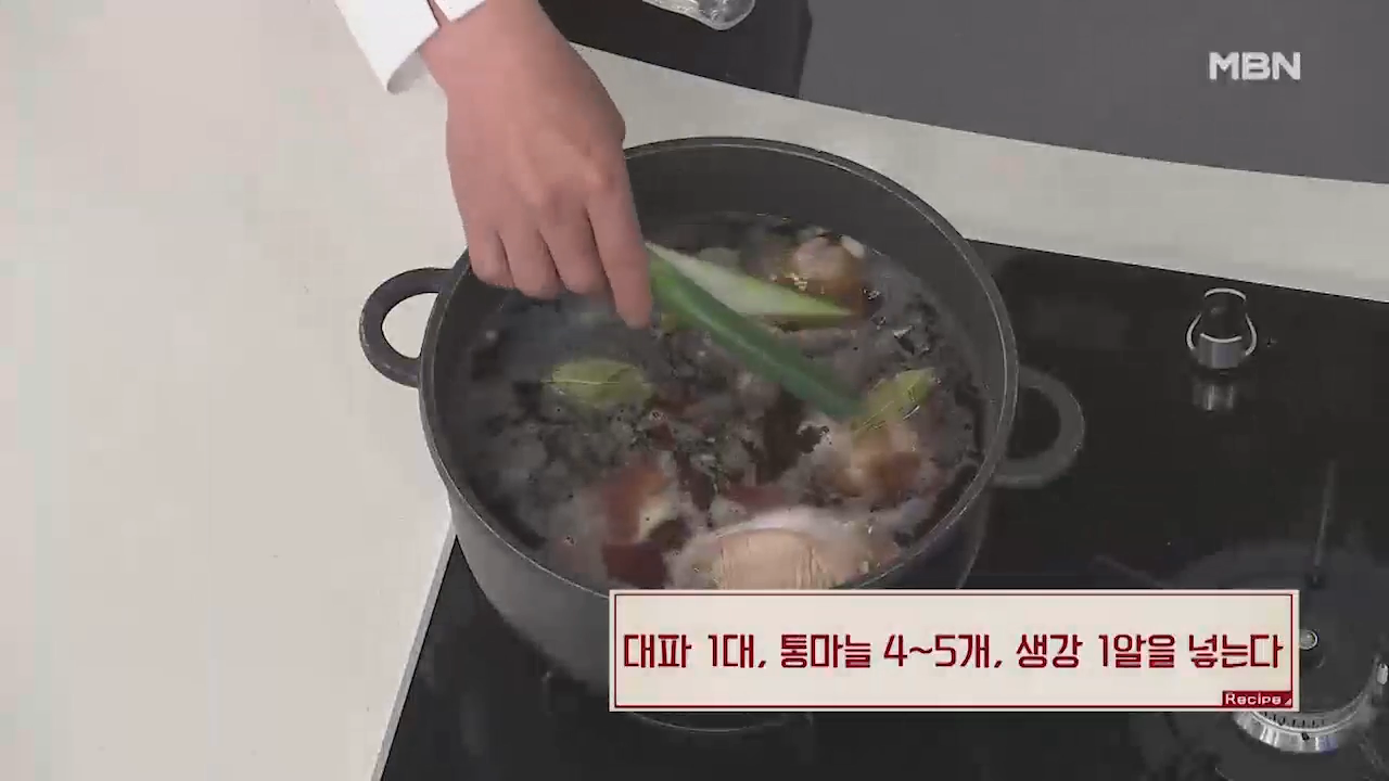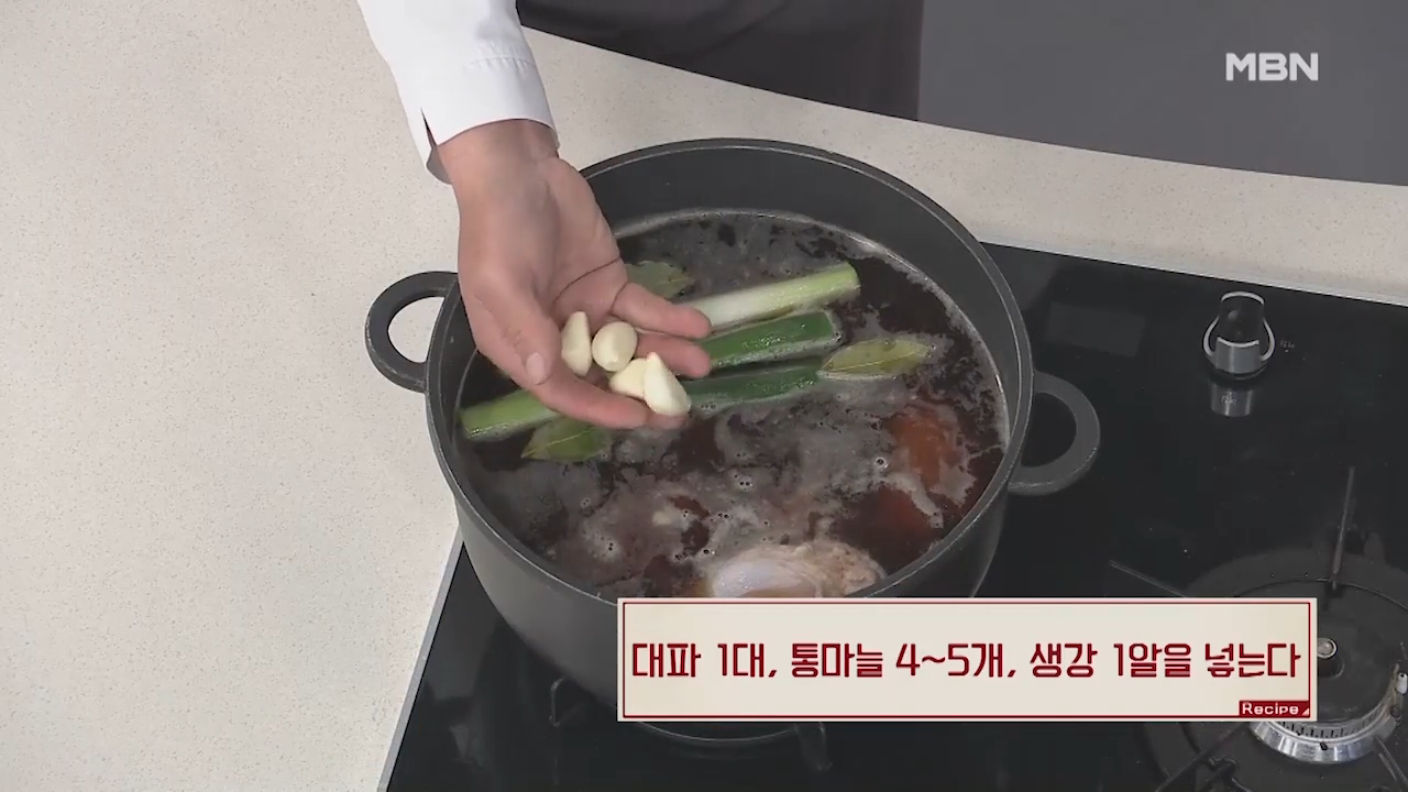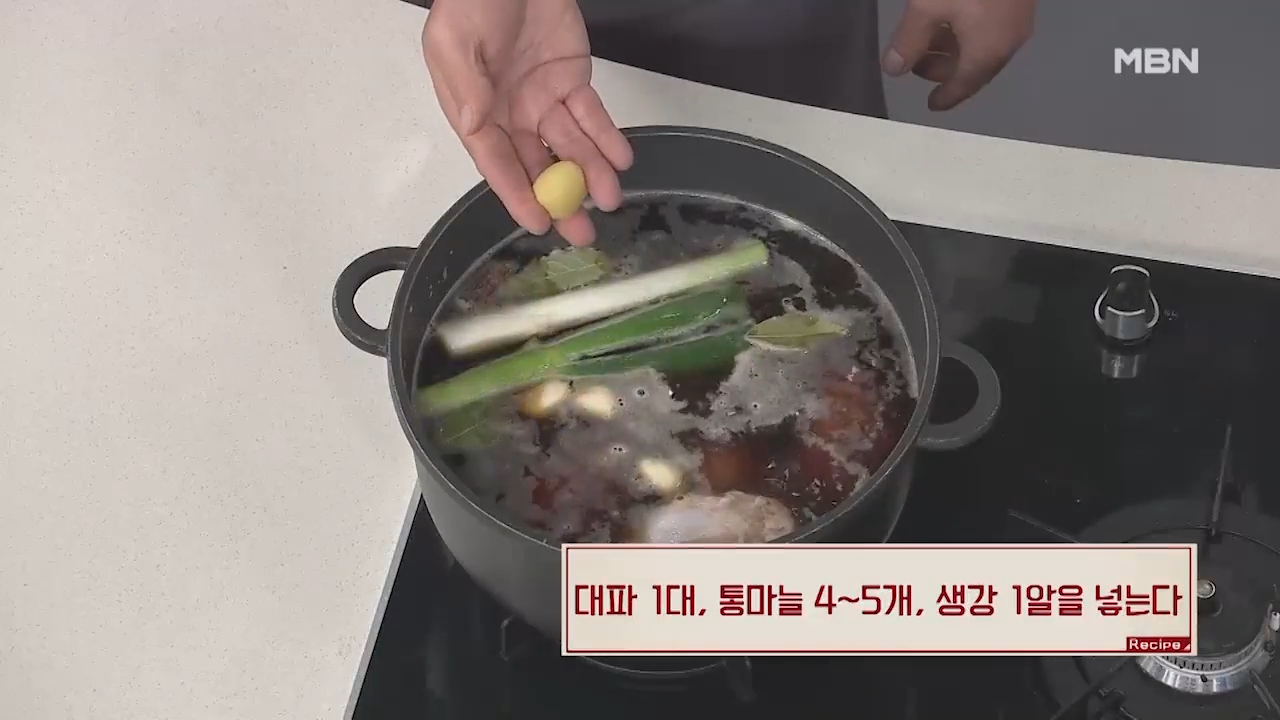▶대파 1대, 통마늘 4~5개, 생강 1알을 넣어 줍니다.