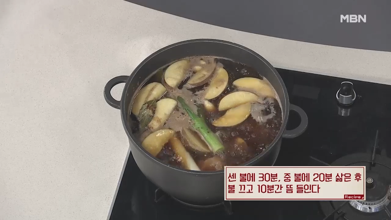 ▶센 불에 30분, 중 불에 20분 삶은 후 불 끄고 10분간 뜸 들여 줍니다. 총 1시간을 삶아 줍니다.