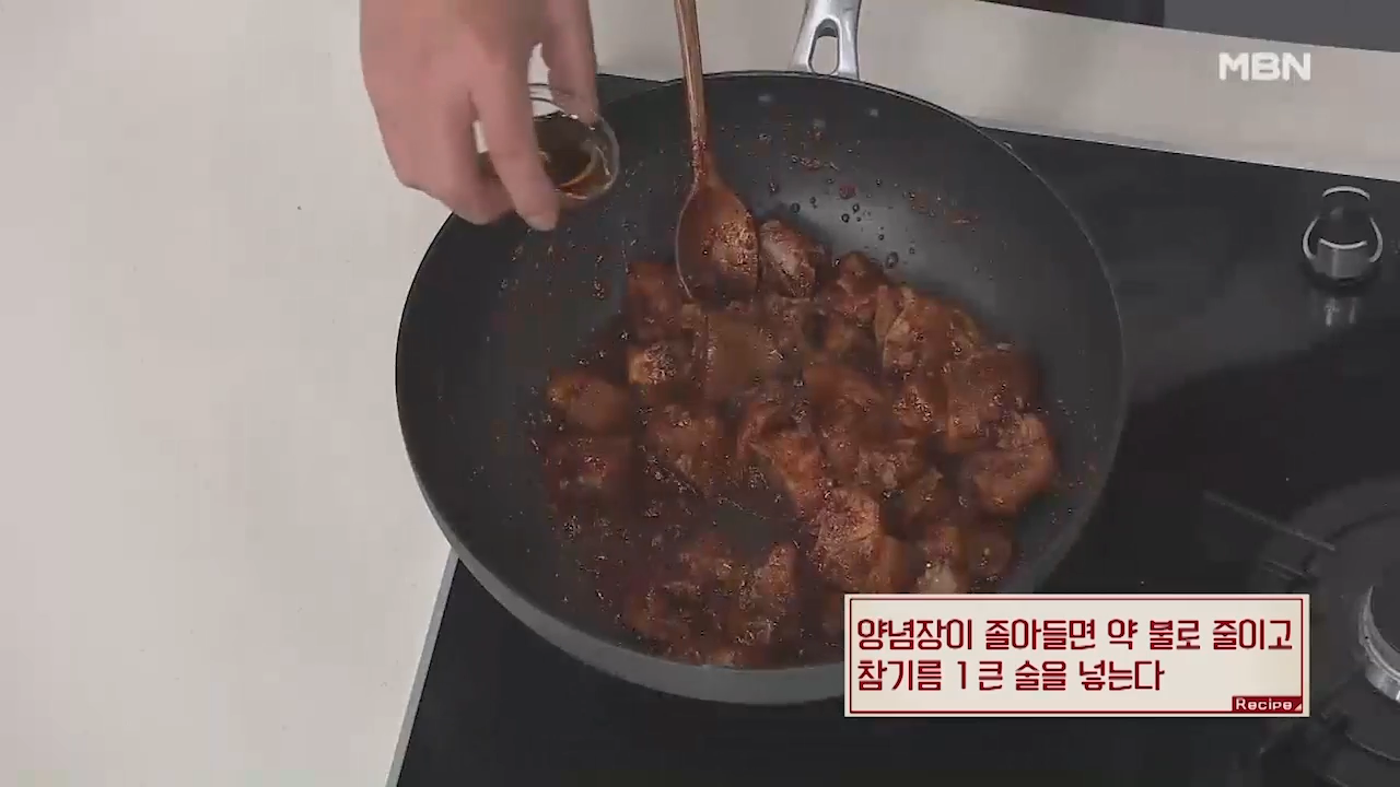 ▶양념장이 졸아들면 약 불로 줄여줍니다.