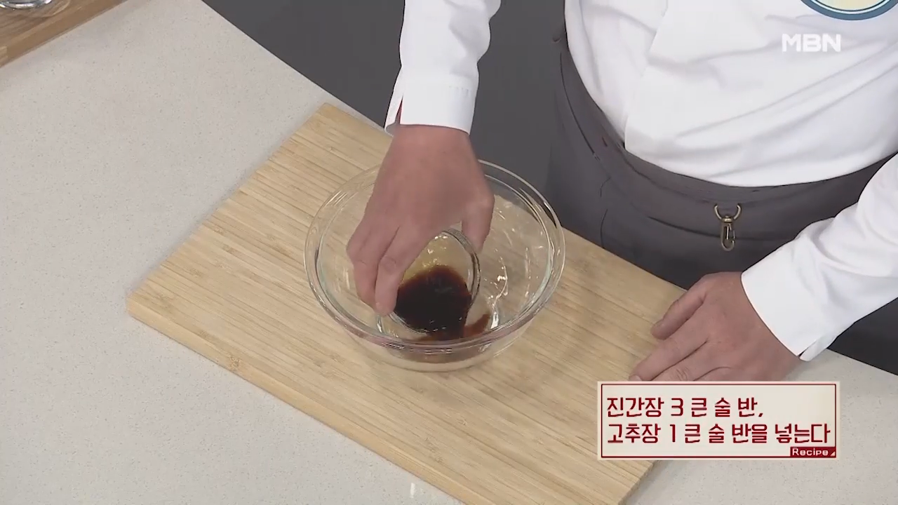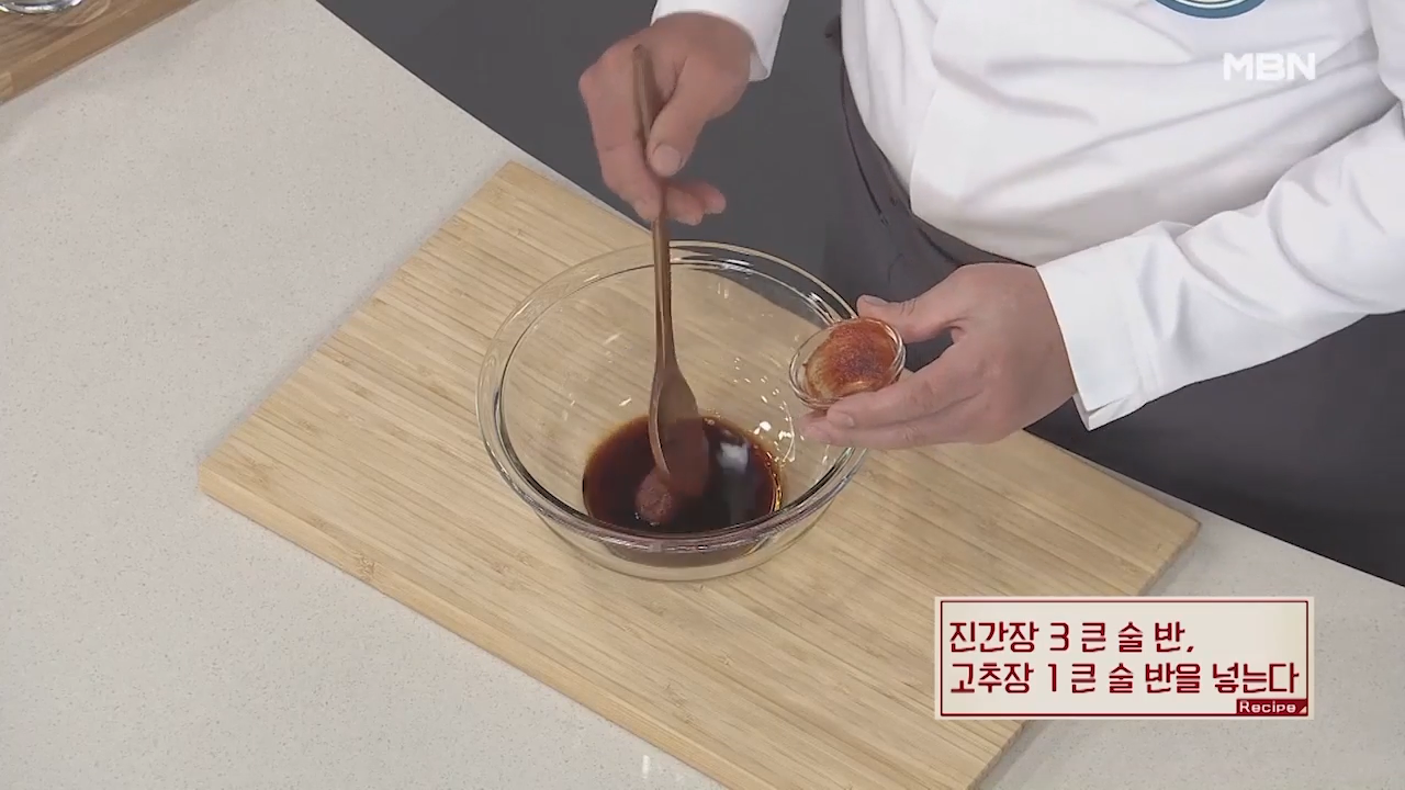 ▶진간장 3큰술 반, 고추장 1큰술 반을 넣어줍니다.