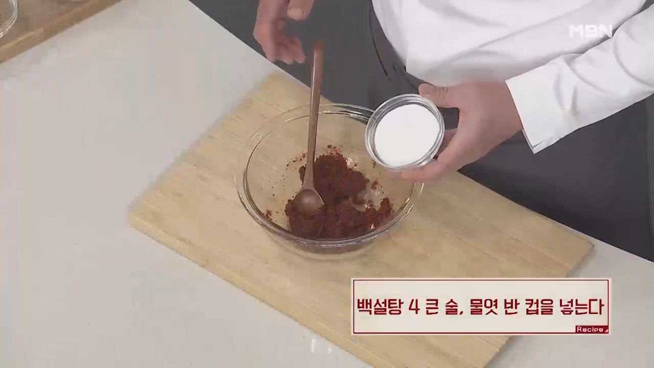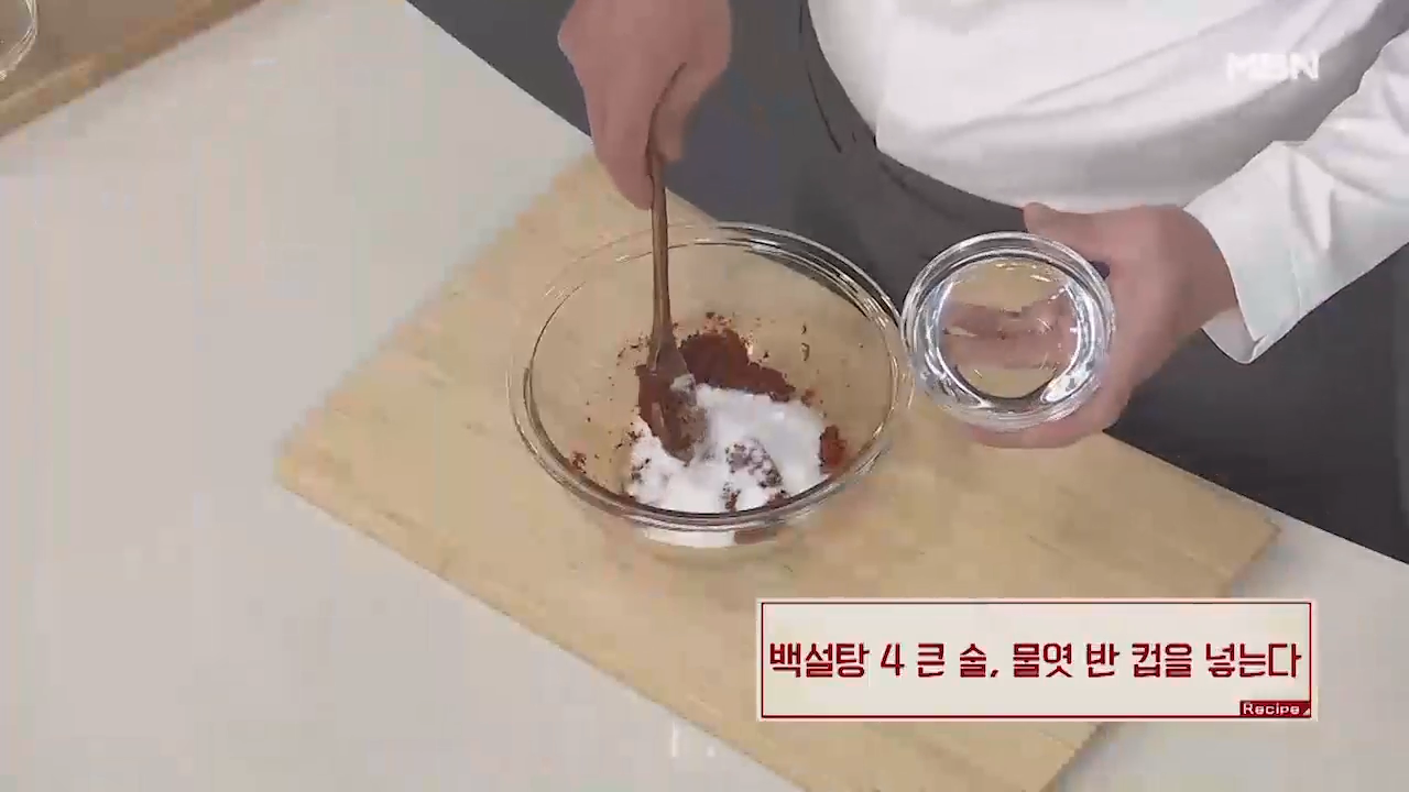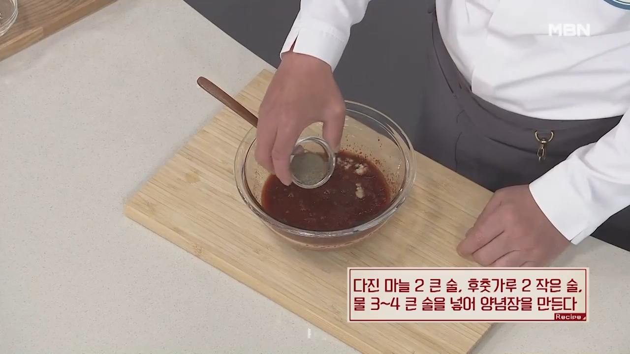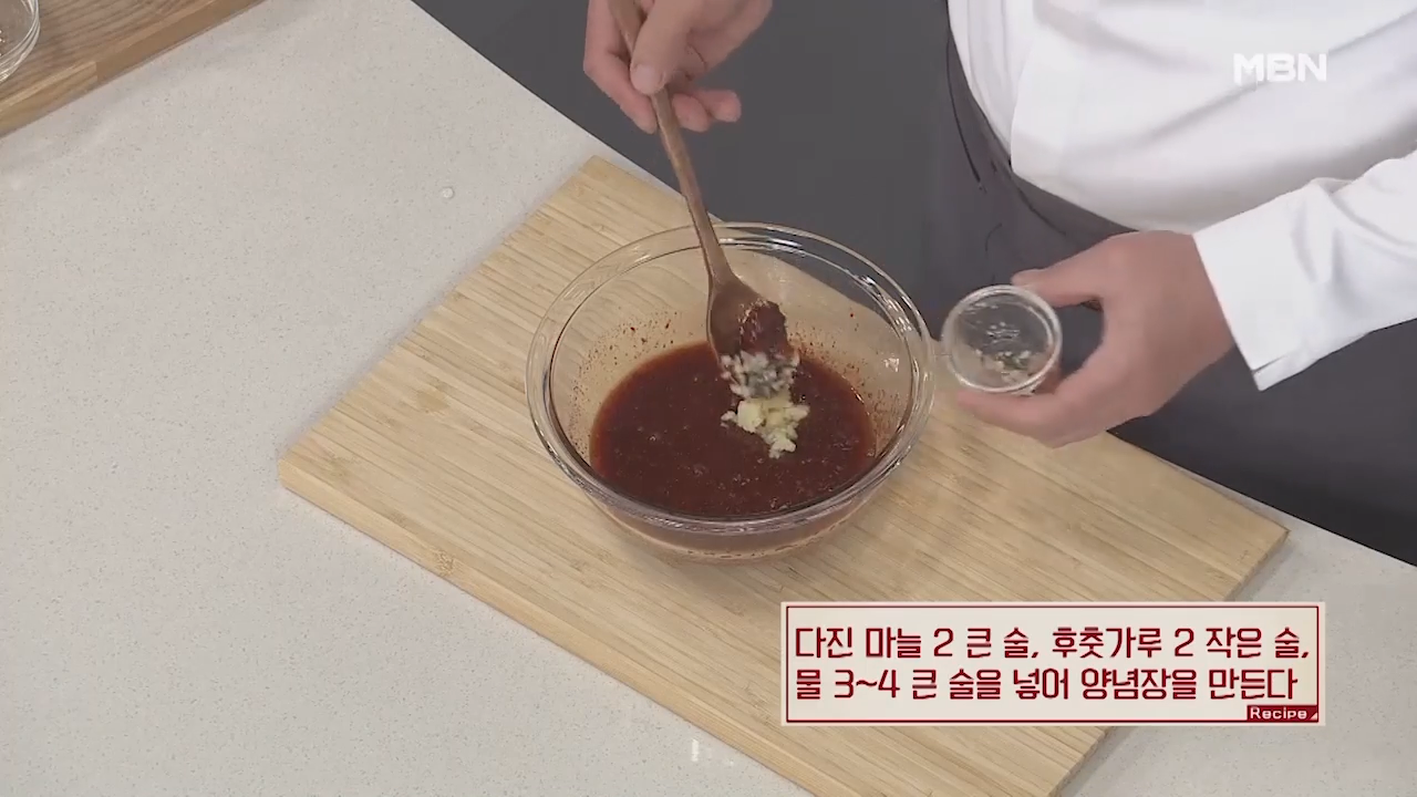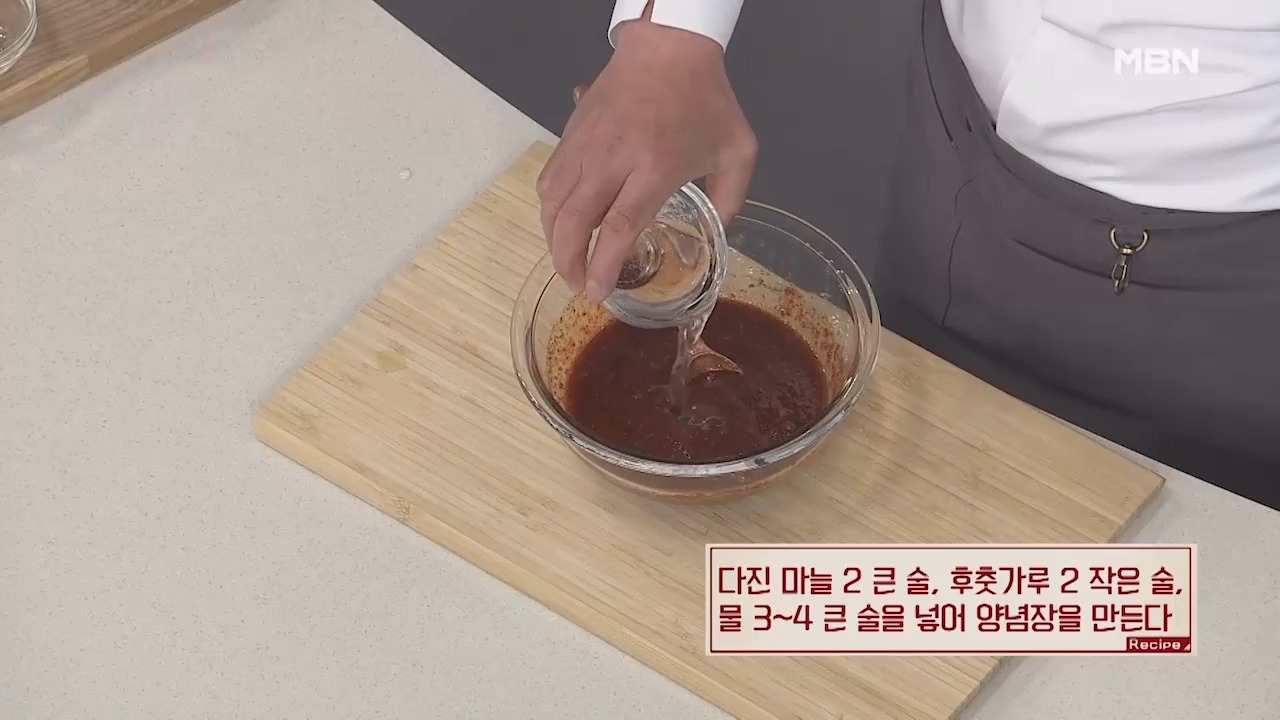 ▶다진 마늘 2큰술, 후춧가루 2작은술, 물 3~4큰술을 넣어 양념장을 만들어 줍니다.