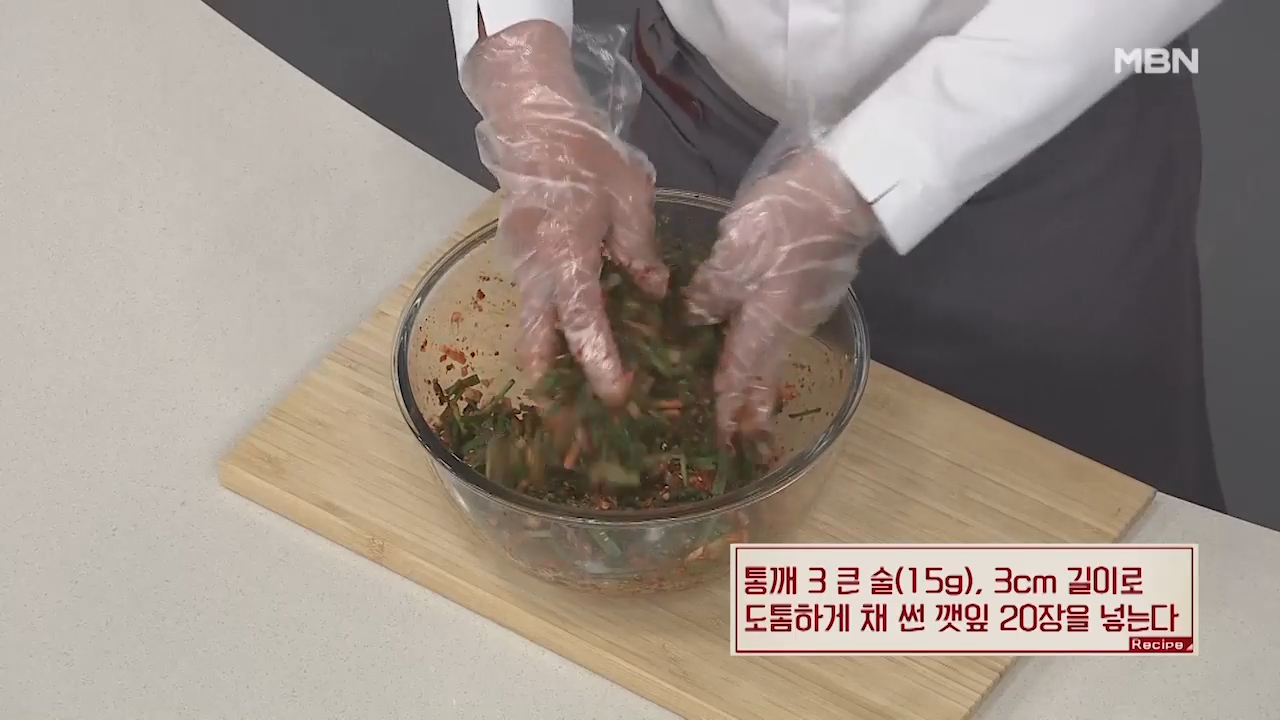 ※김칫소에 깻잎을 넣으면 향긋한 향과 풍미를 더합니다.
