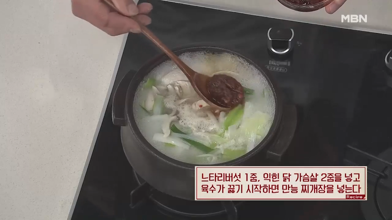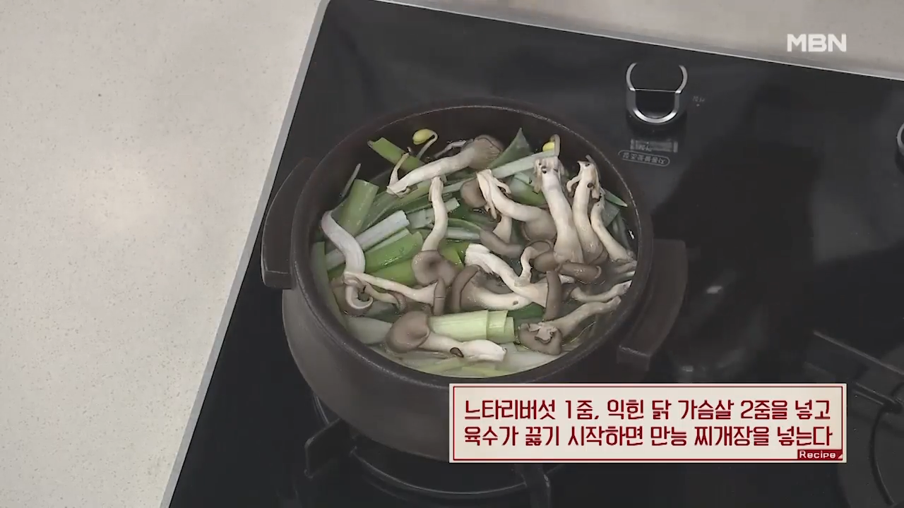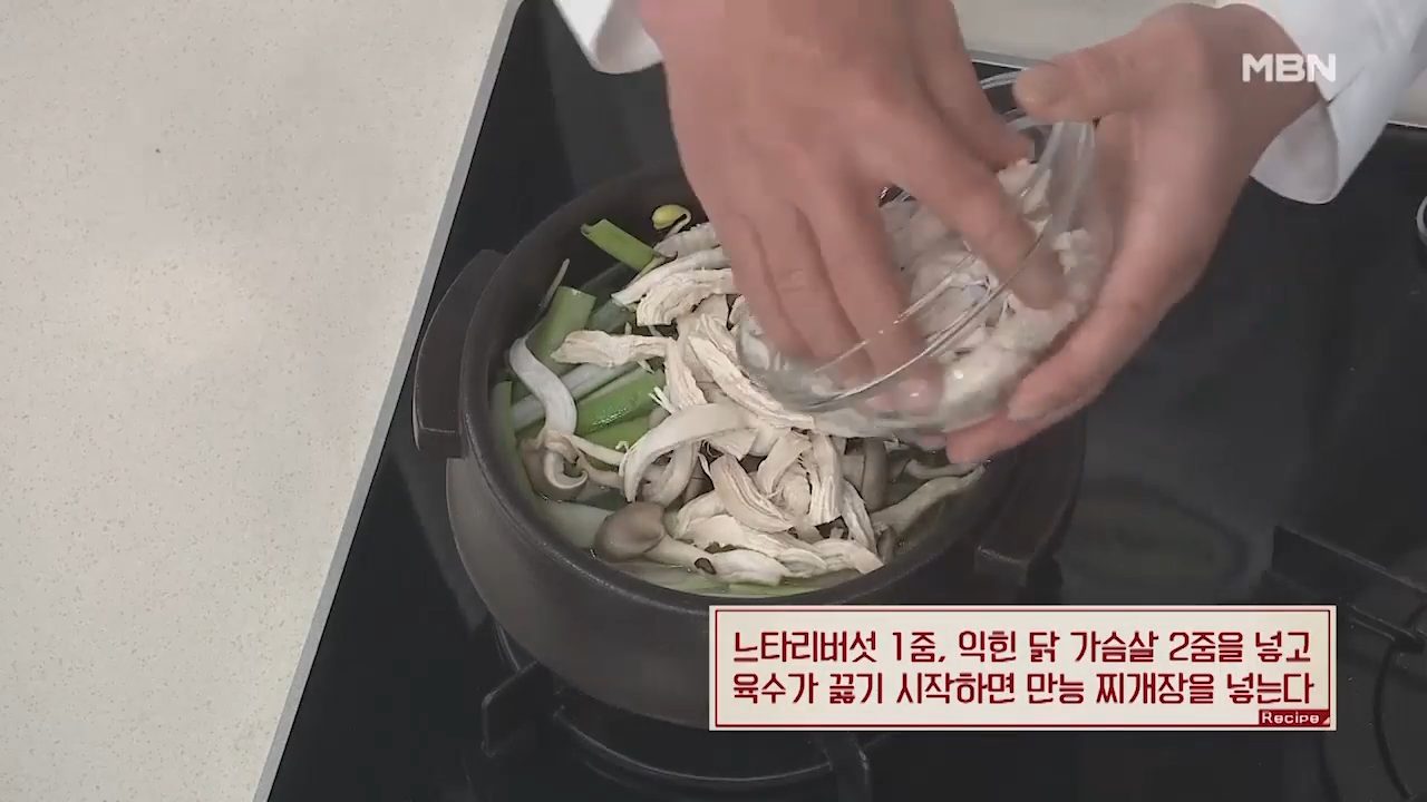 ② 느타리버섯, 닭가슴살, 만능 찌개장 넣기