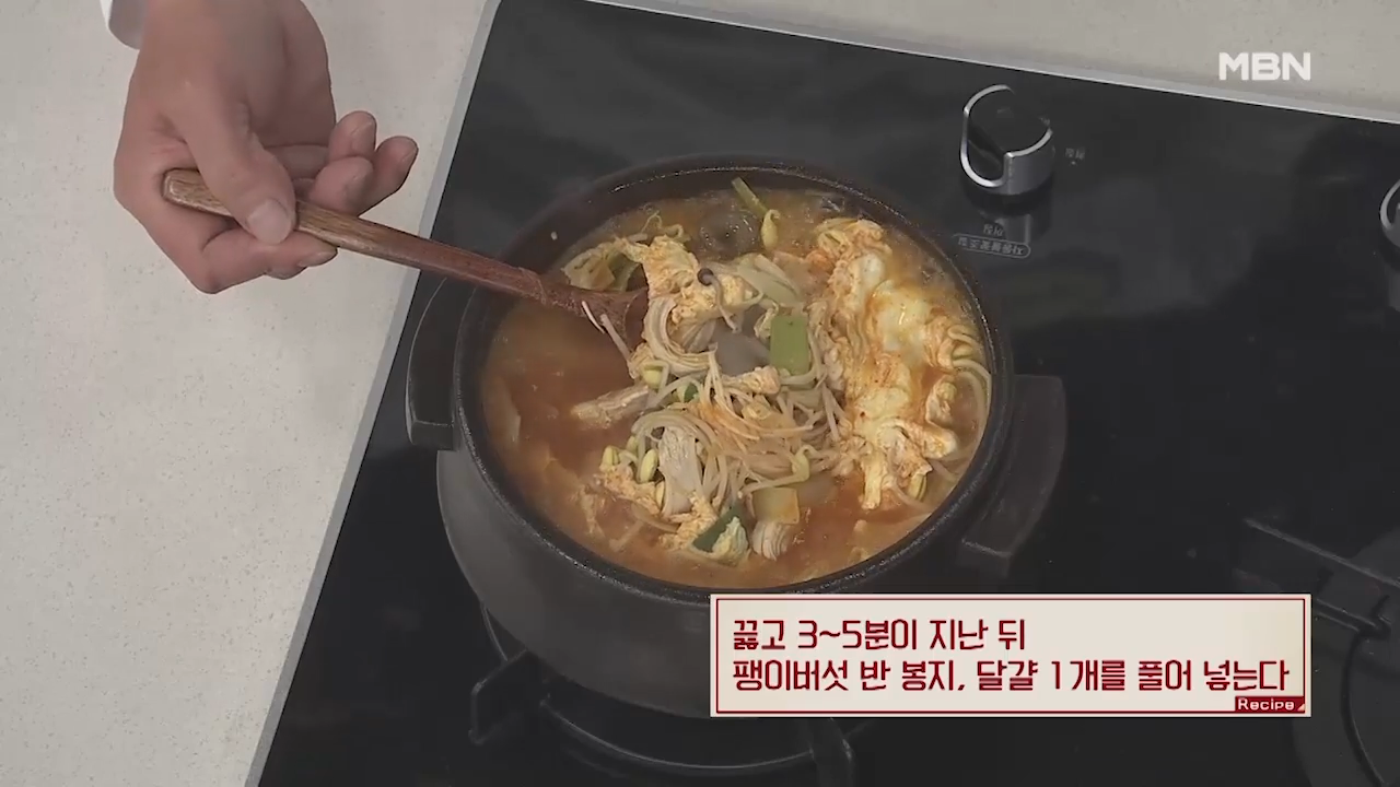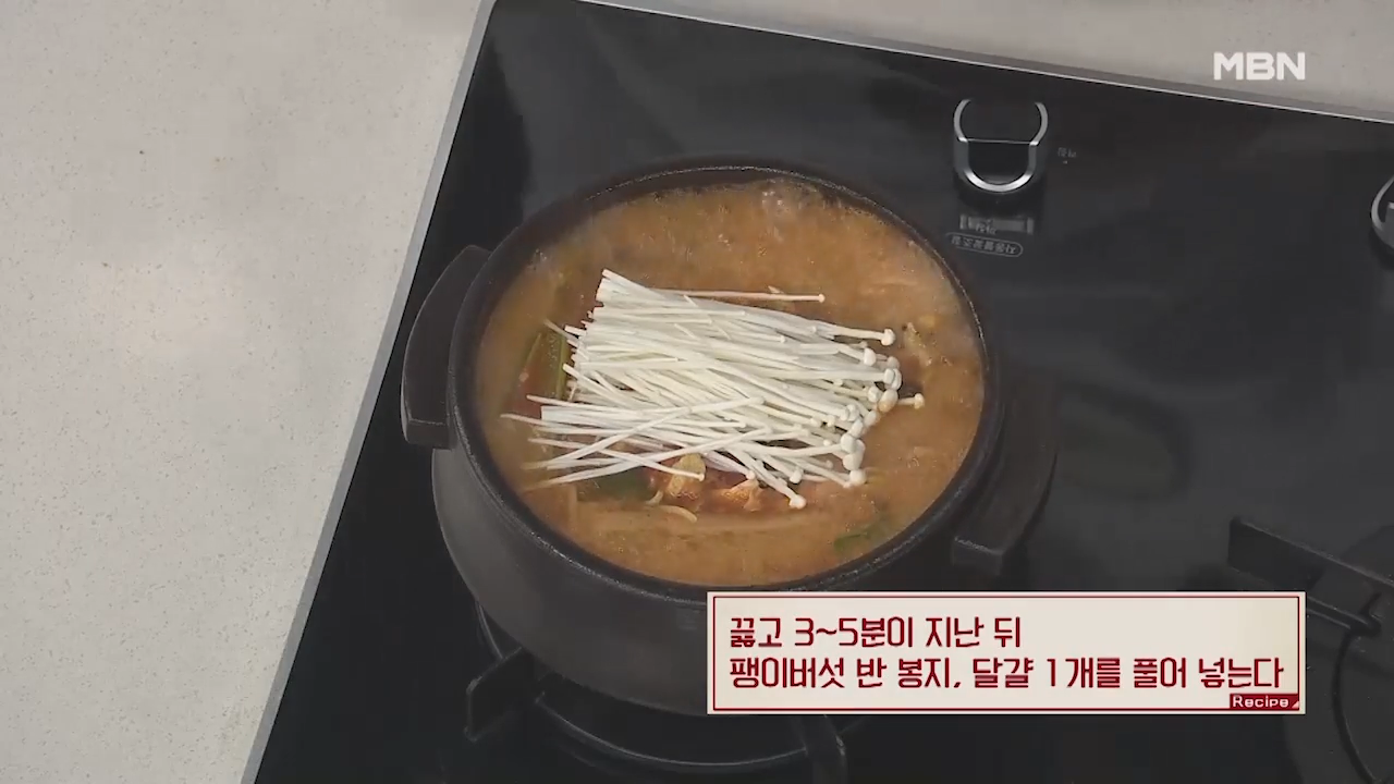 ▶팽이버섯 반 봉지를 넣어줍니다.