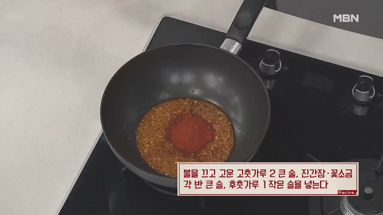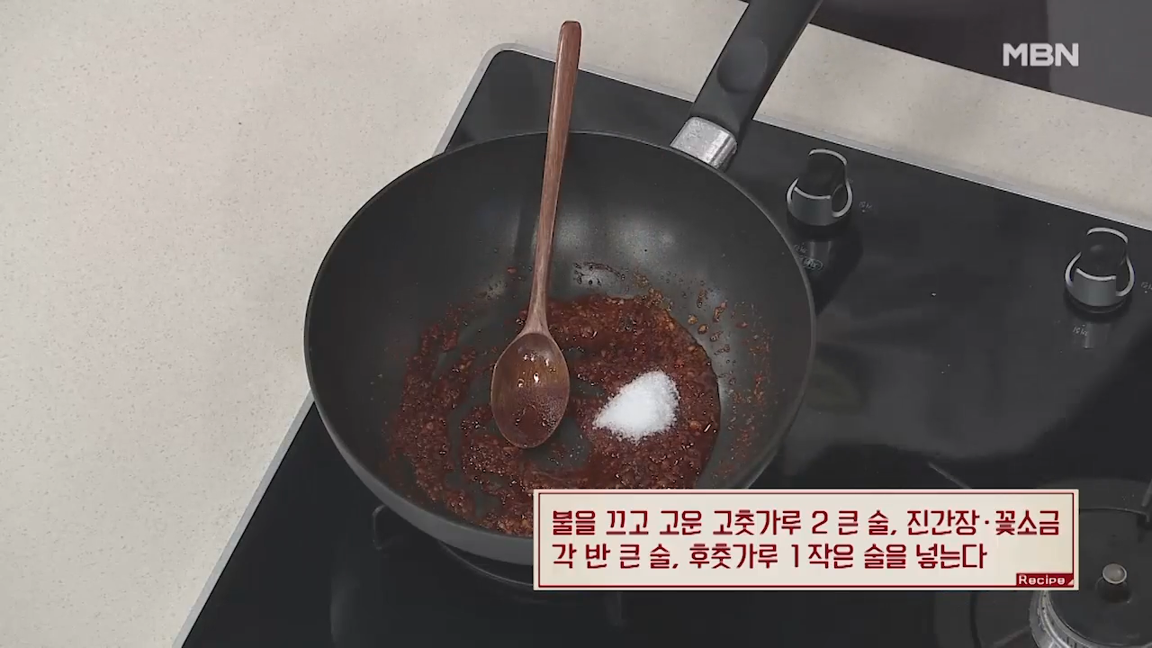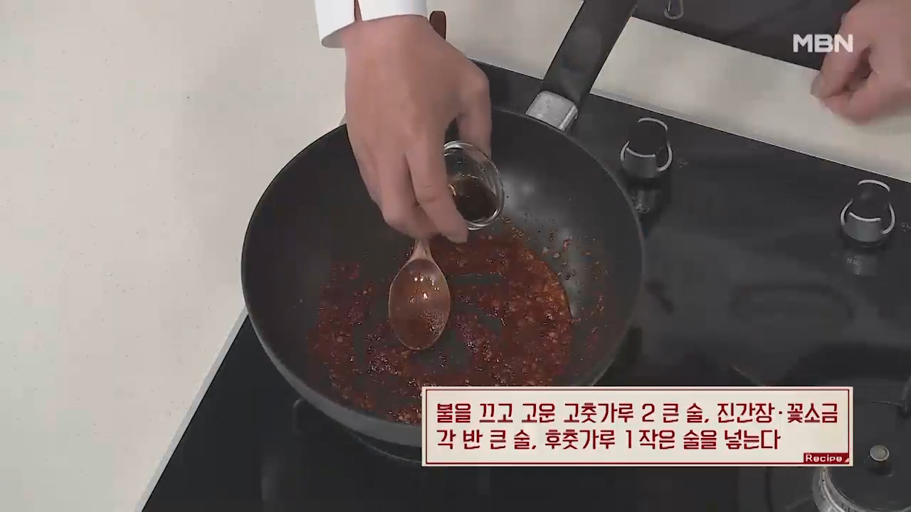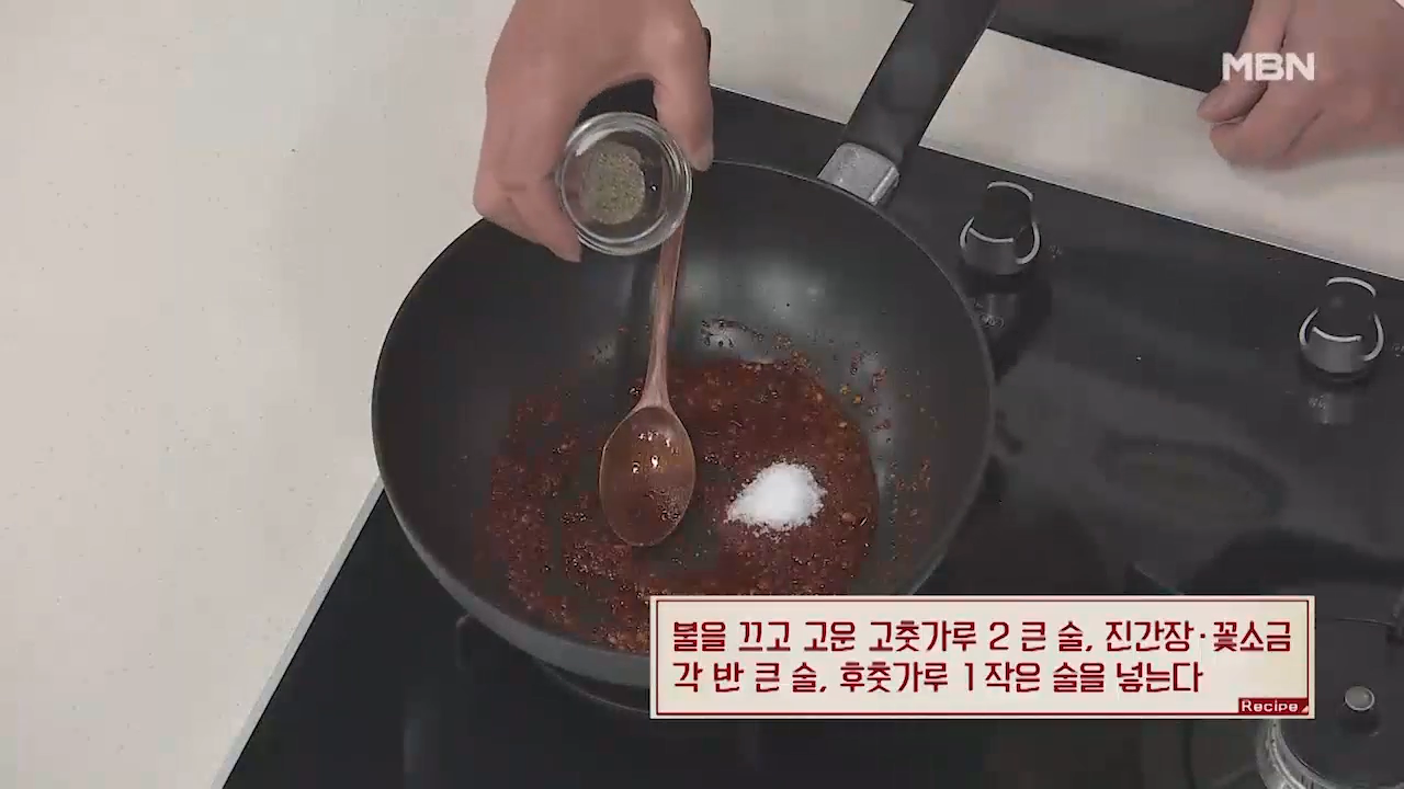 ▶고춧가루를 넣기 전에 꼭 불을 꺼줍니다.
