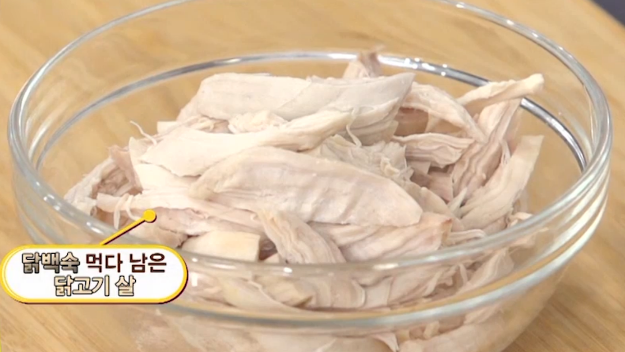 ※남은 닭백숙이 없다면 닭가슴살을 이용해도 좋습니다.