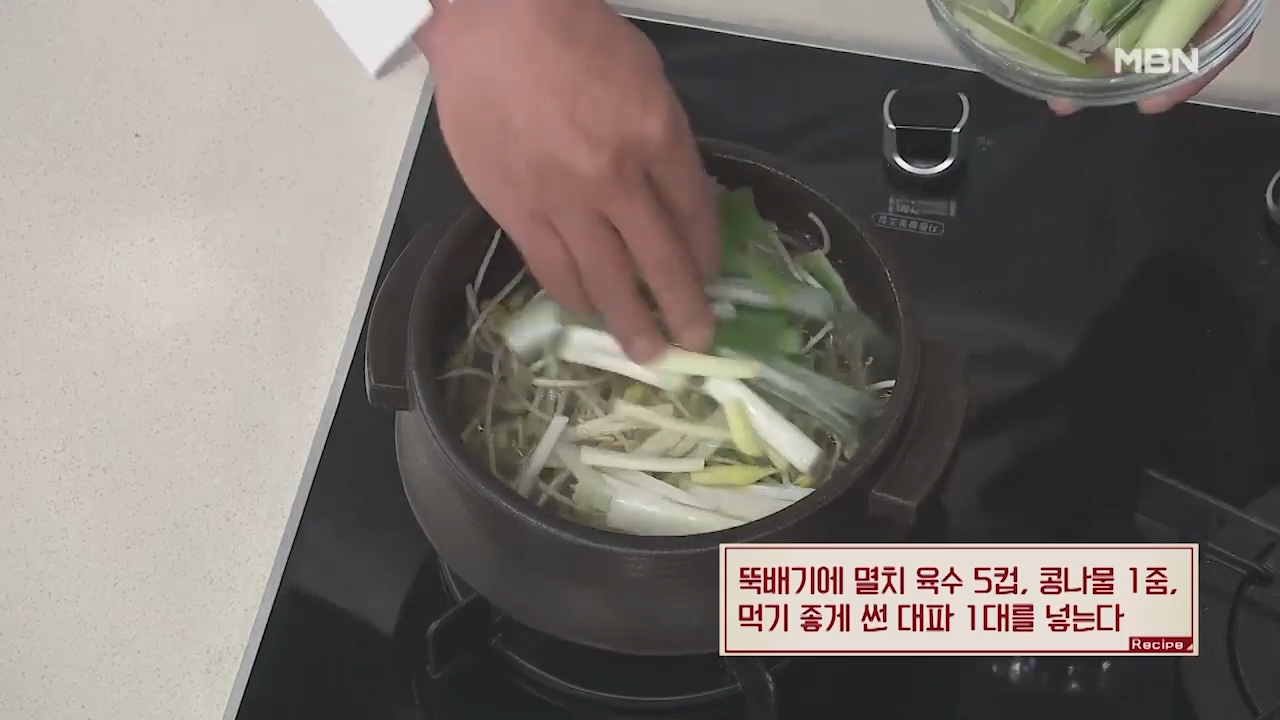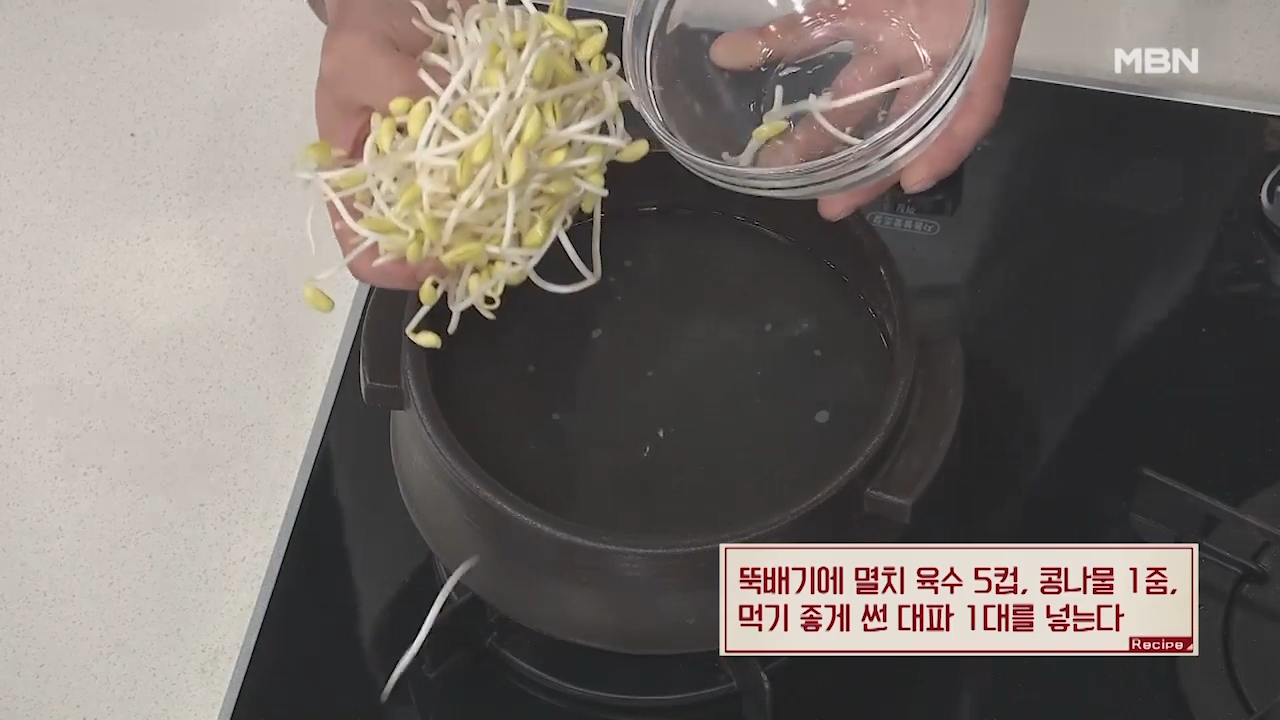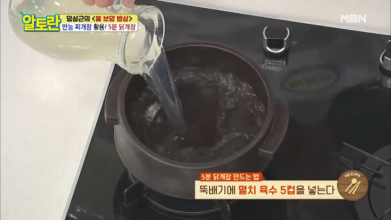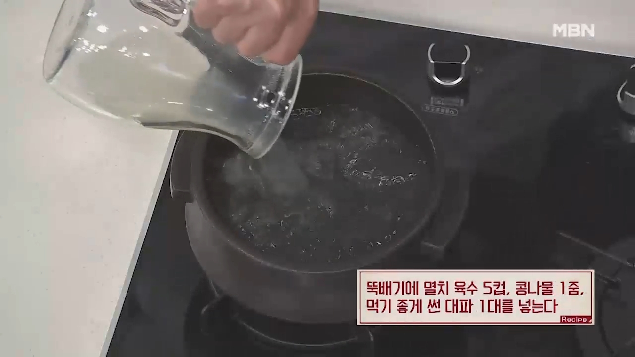 ▶뚝배기에 멸치 육수 5컵을 넣어줍니다.