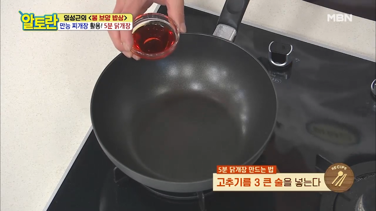 ▶고추기름 3 큰 술을 넣어 줍니다.