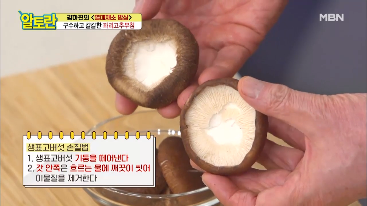 ▶손질한 생표고버섯갓 5개를 넣어줍니다.