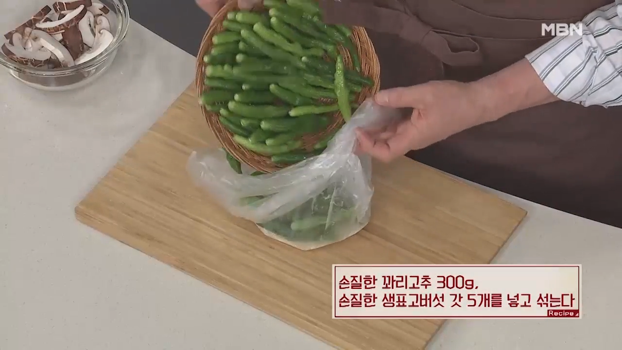 ② 꽈리고추, 생표고버섯 넣고 함께 섞기