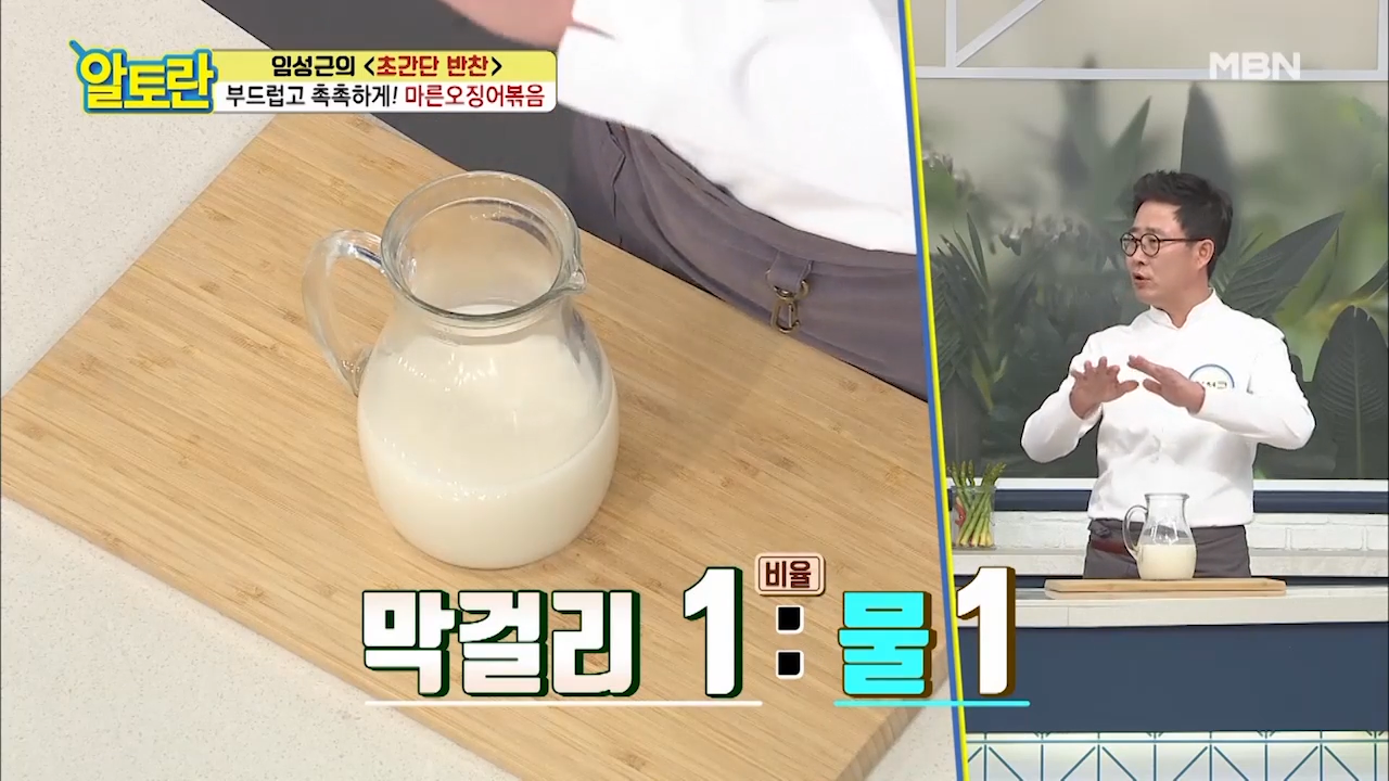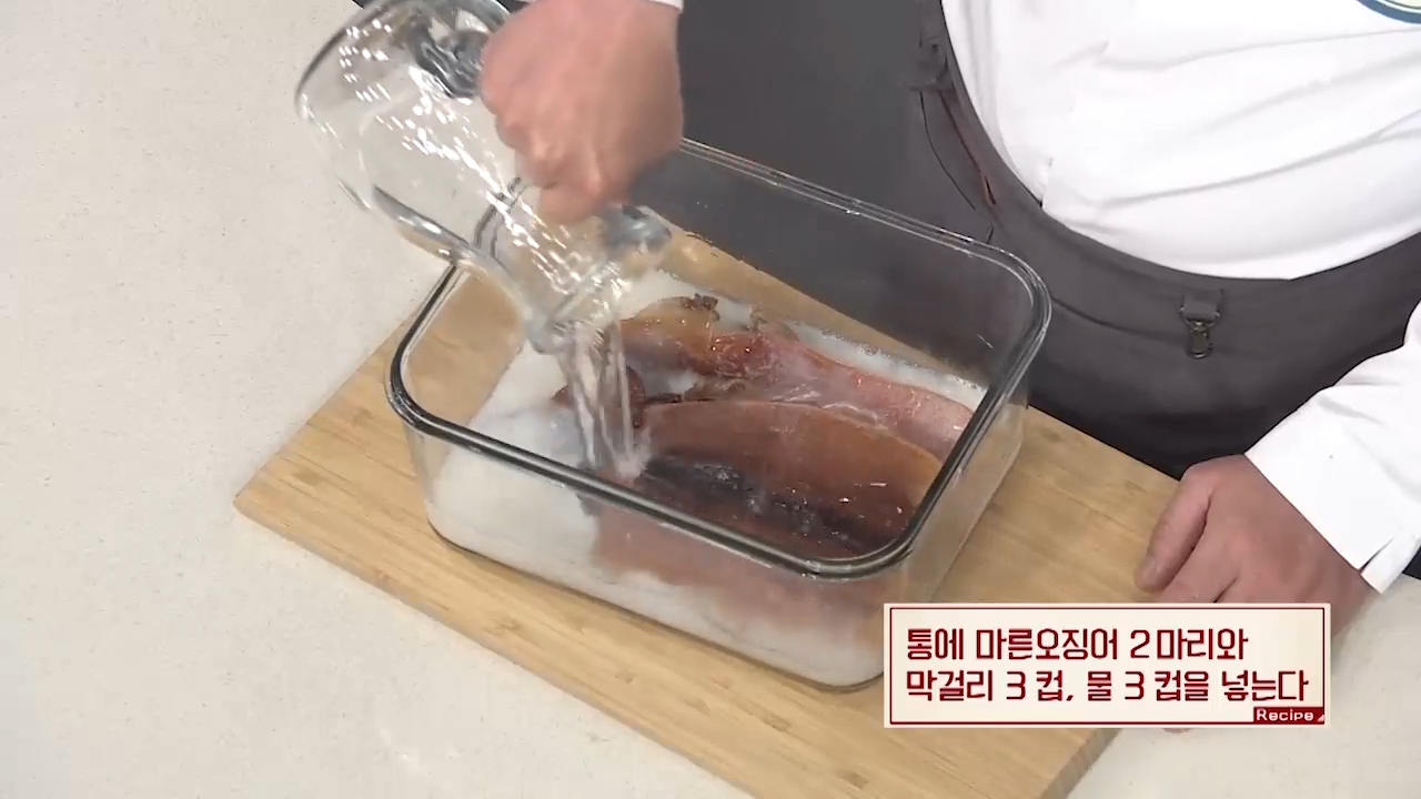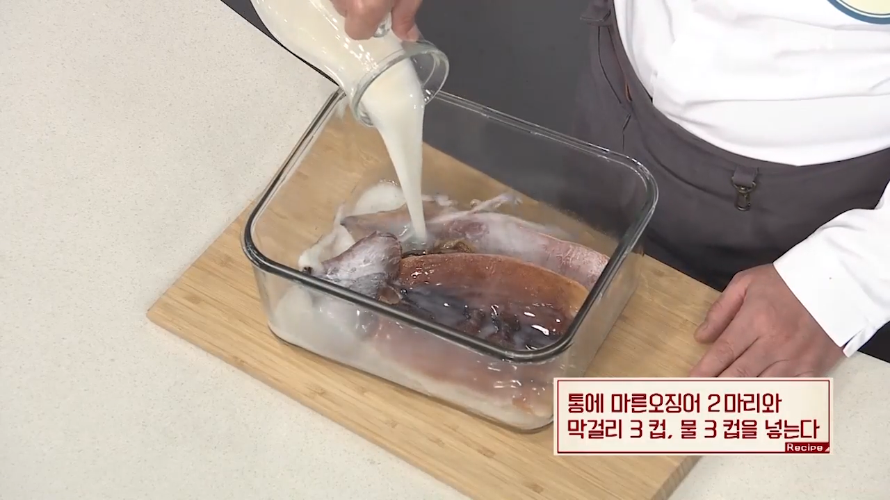 ※막걸리만 사용 시 오징어에 막걸리 냄새가 너무 진하 개 배이기 때문에 막걸리와 물을 1:1의 비율로 넣어 줍니다.