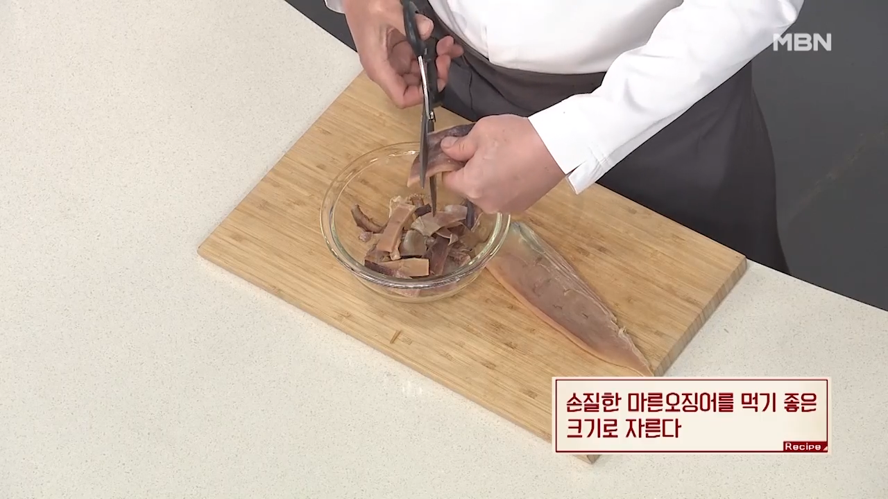 ▶손질한 마른오징어를 먹기 좋은 크기로 잘라줍니다.