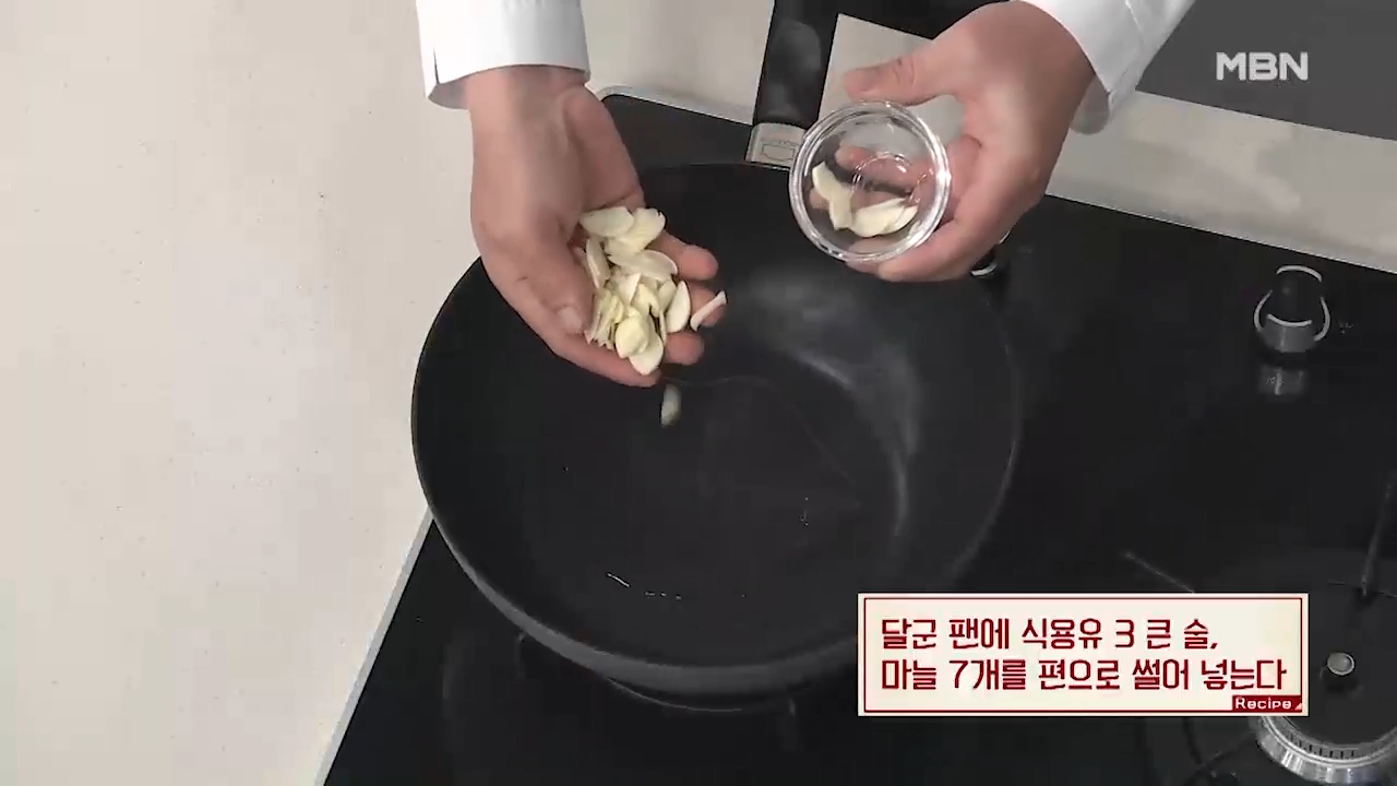 ▶마늘 7개를 편으로 썰어 넣어줍니다.