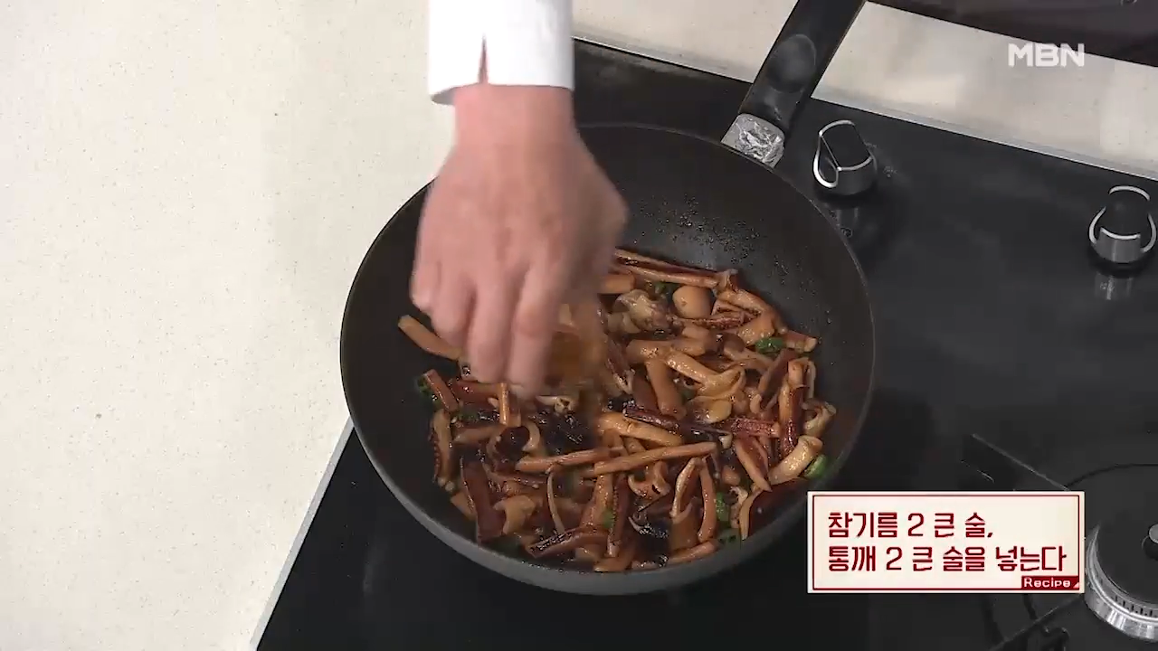 ▶참기름 2큰 술, 통개 2큰 술을 넣어줍니다.
