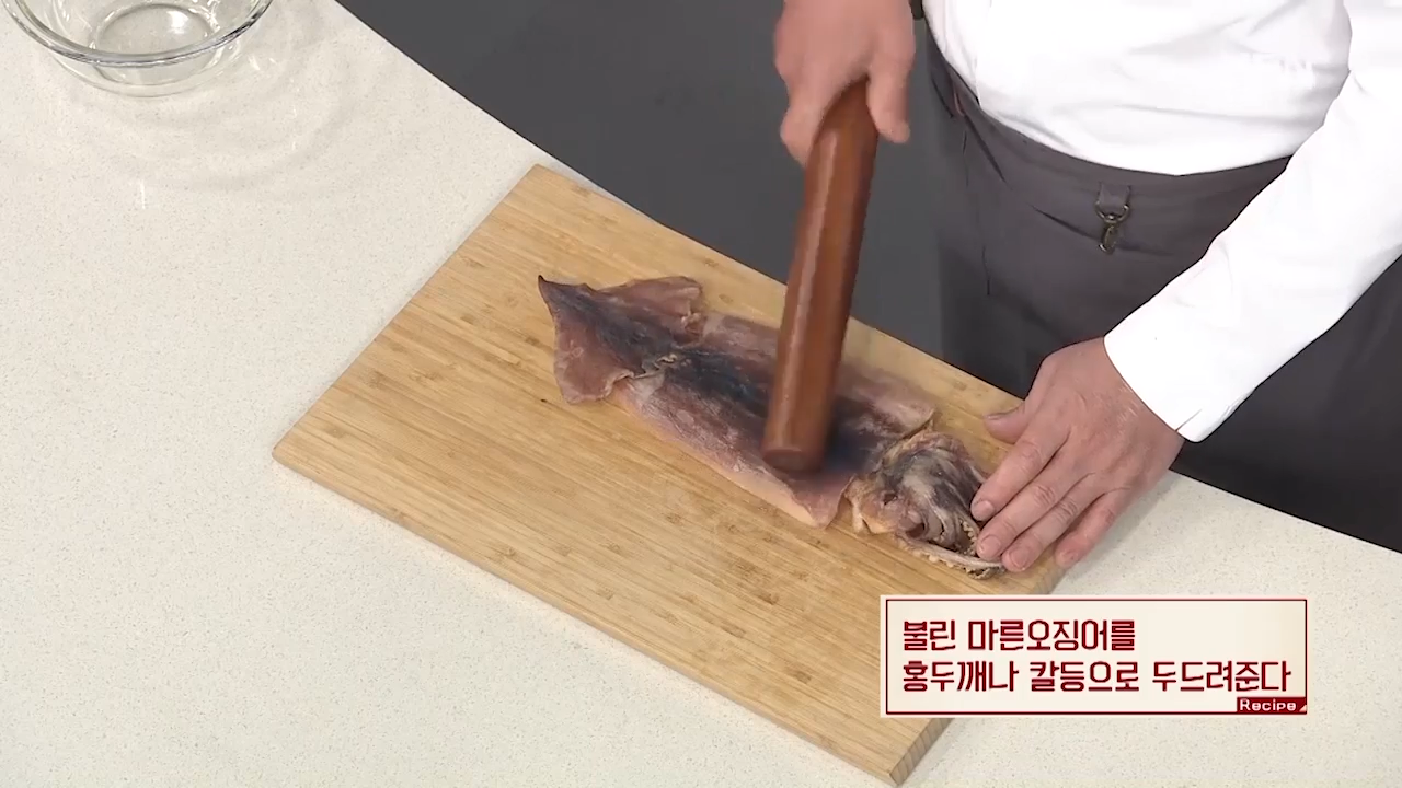 ※한번 더 두드려 주면 마른오징어의 섬유질이 끊어져 부드럽고 쫄깃한 식감이 나게 됩니다.