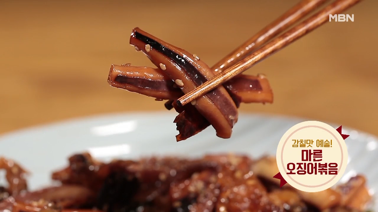 오징어의 대표 성분인 타우린이 담즙산 생성, 간세포 재생, 장 근육 이완시켜주기 때문에 몸에 활력을 채워줄 수 있는 반찬이라고 합니다.