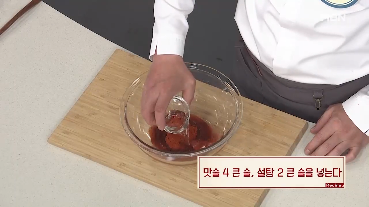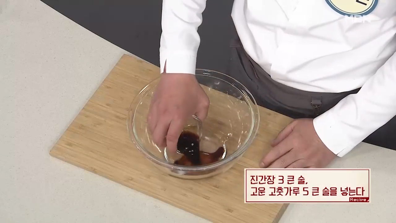 ① 진간장, 고운 고춧가루, 맛술, 설탕 넣기