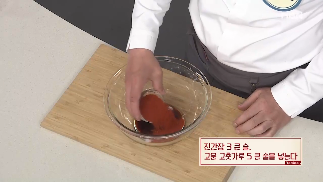 ▶고운 고춧가루 5큰 술을 넣어줍니다.