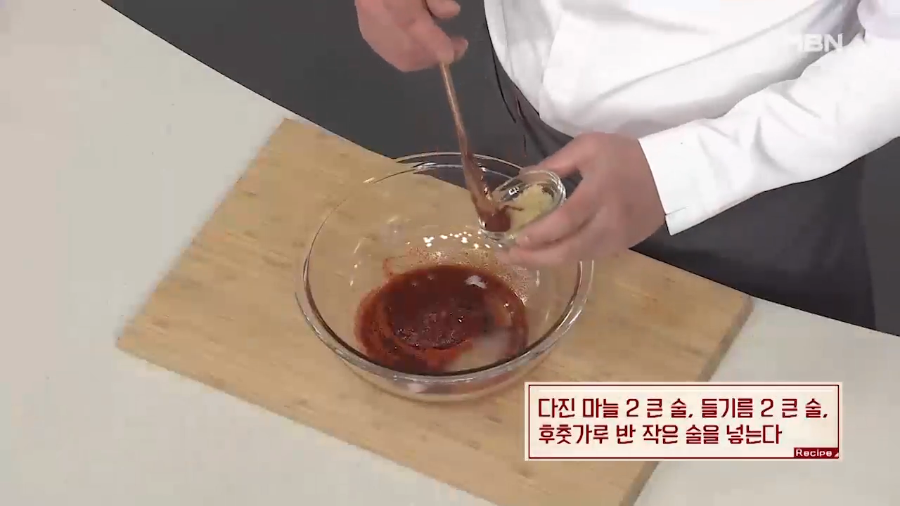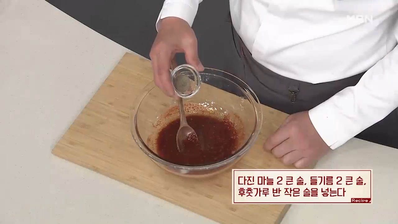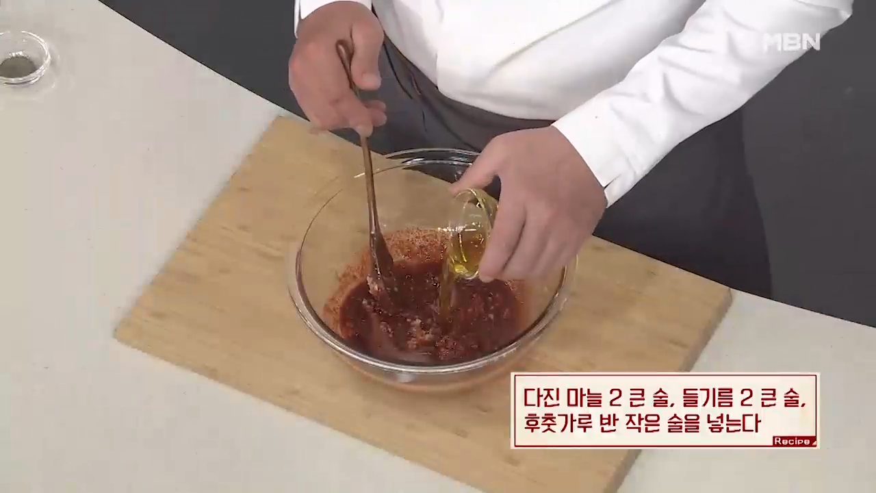 ③ 다진 마늘, 들기름, 후춧가루 넣기