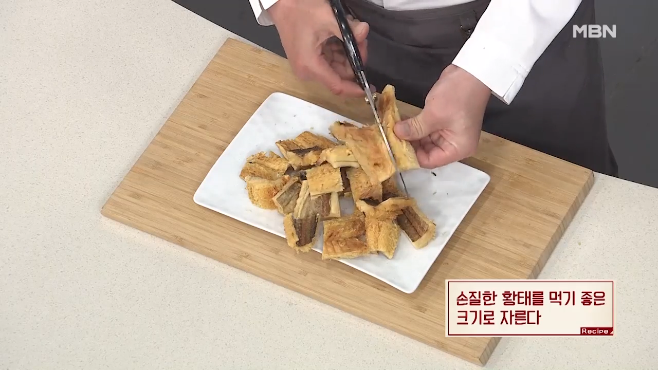 ▶손질한 황태를 먹기 좋은 크기로 잘라 줍니다.