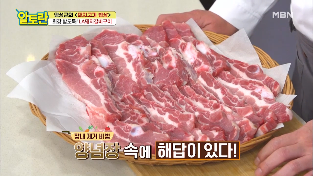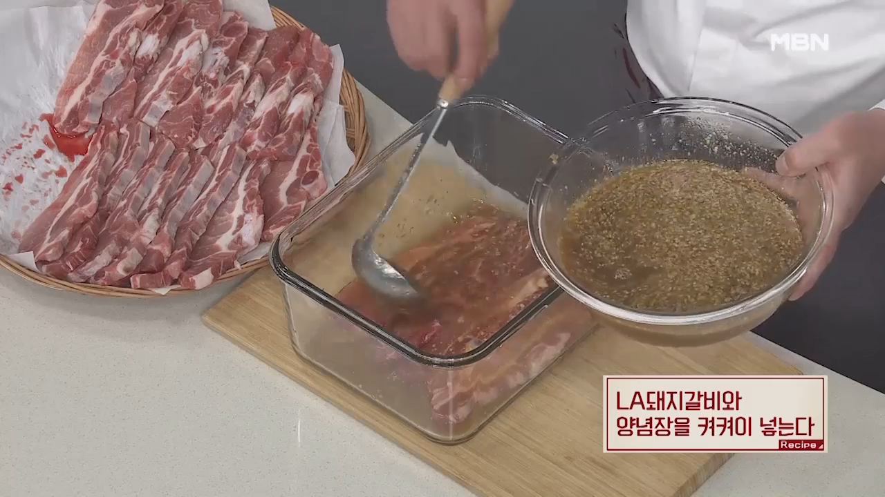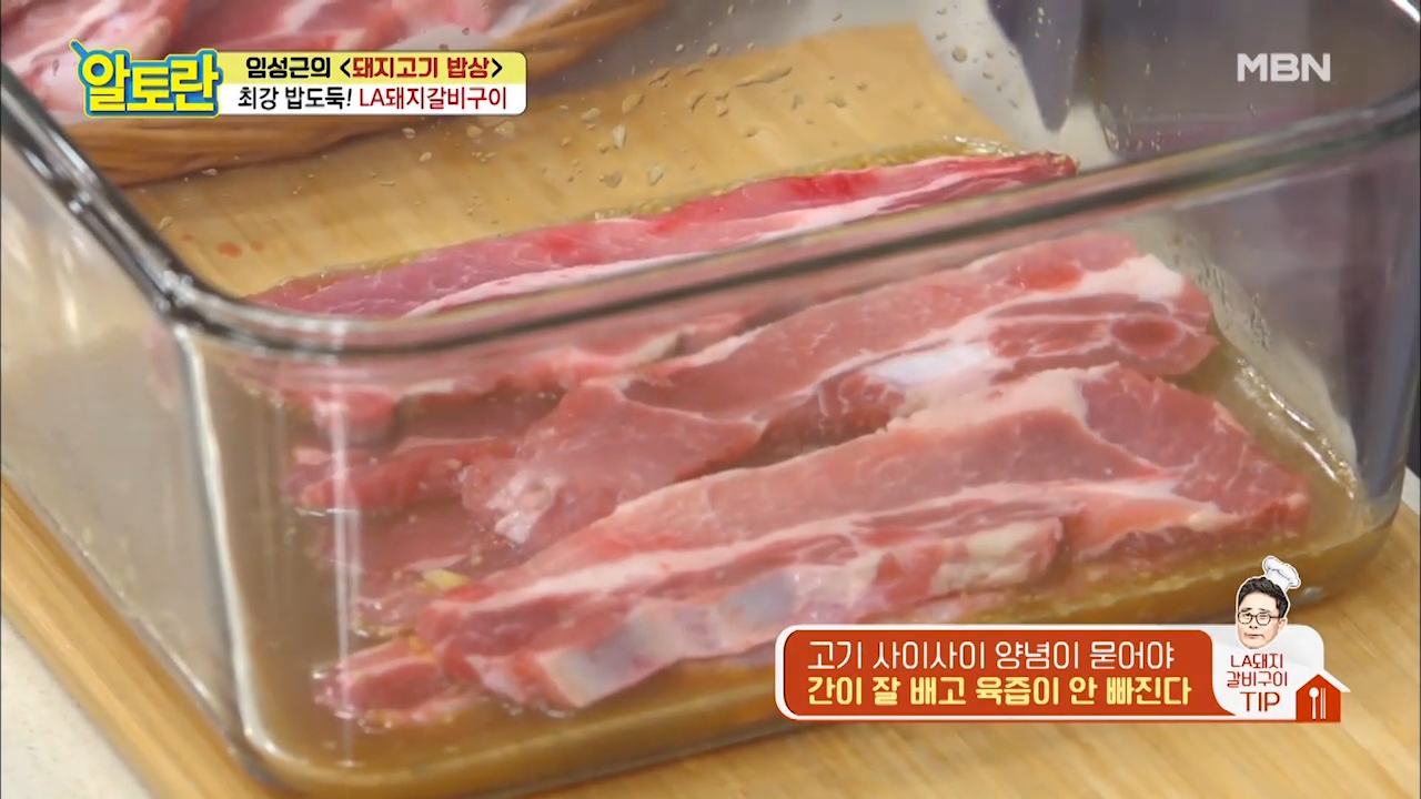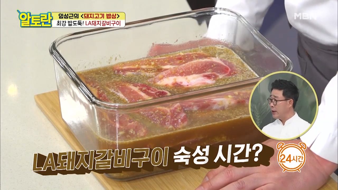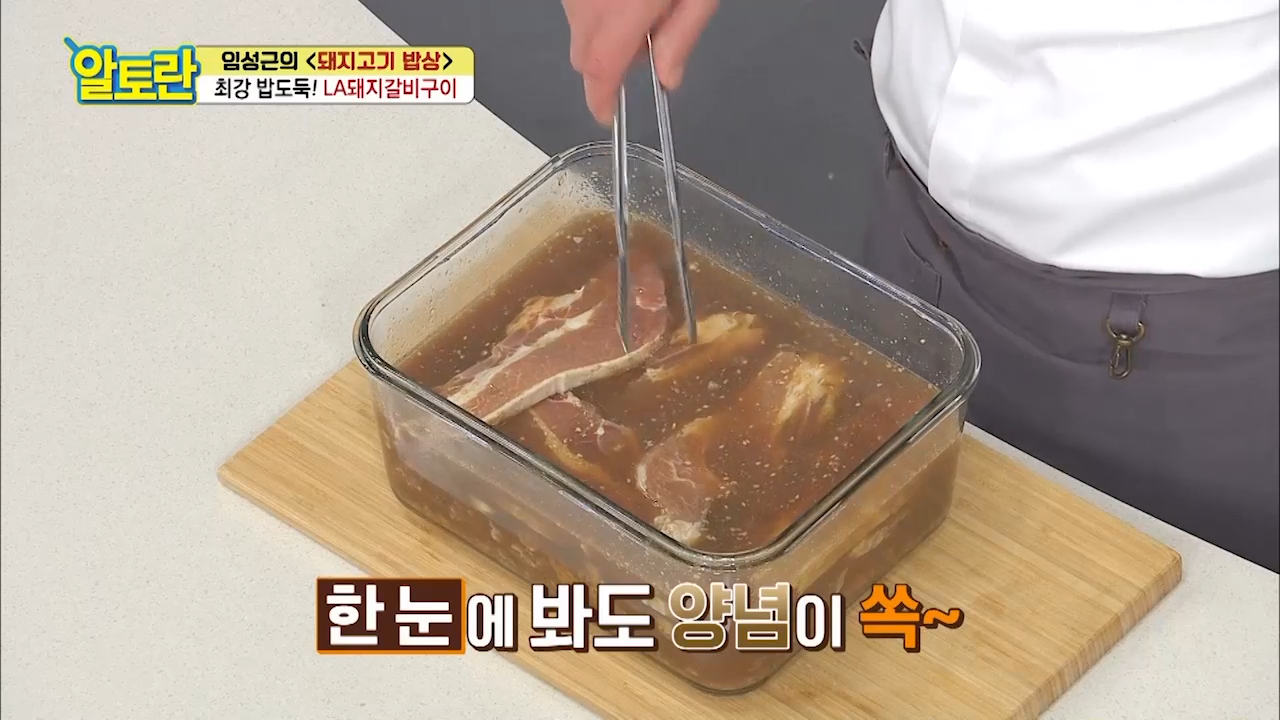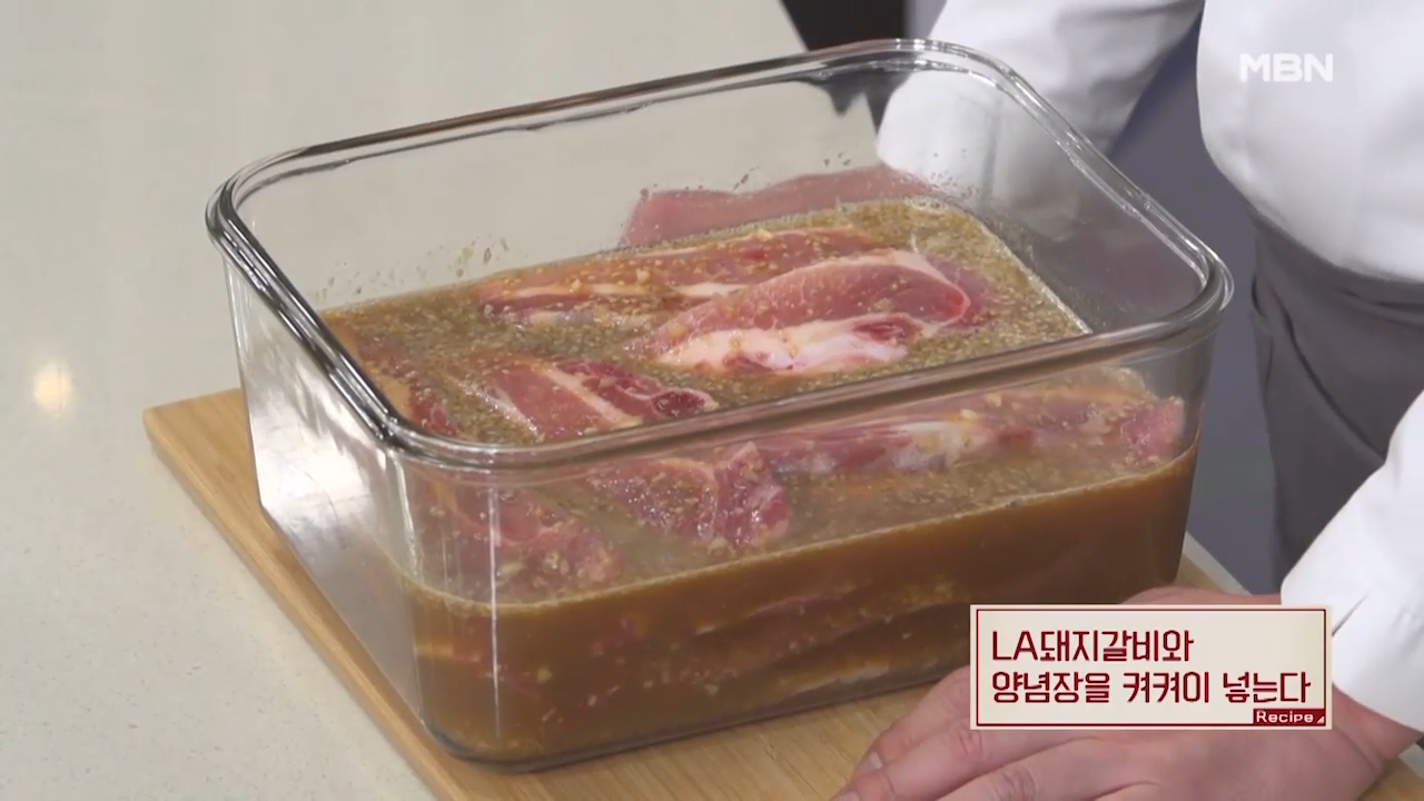 보기에도 아주 잘 재워진 것 같죠? 24시간 숙성한 LA돼지갈비로 이대로 굽기만 하면 아주 맛있는 LA갈비구이를 먹을 수 있습니다. 한식대첩 우승자인 진정한 한식의 고수 임성근 조리기능장님의 LA돼지갈비 재는법 & 맛있게 굽는 비법 시작합니다. ^^
