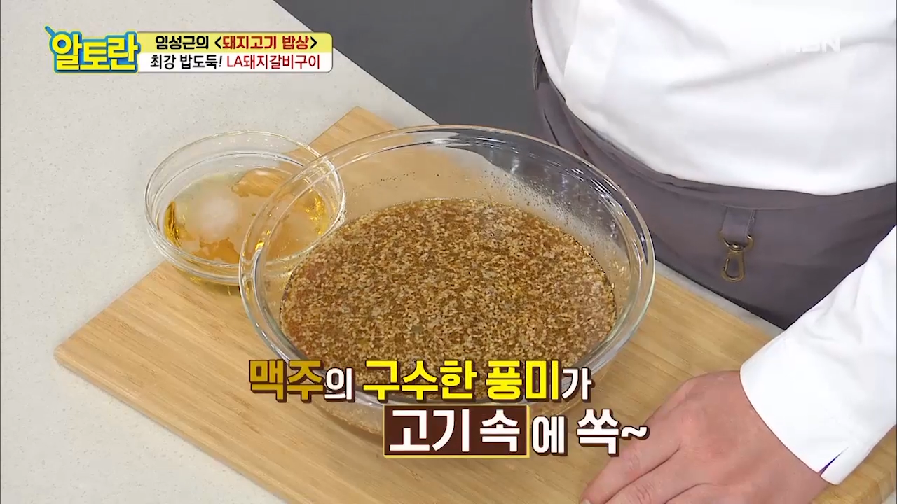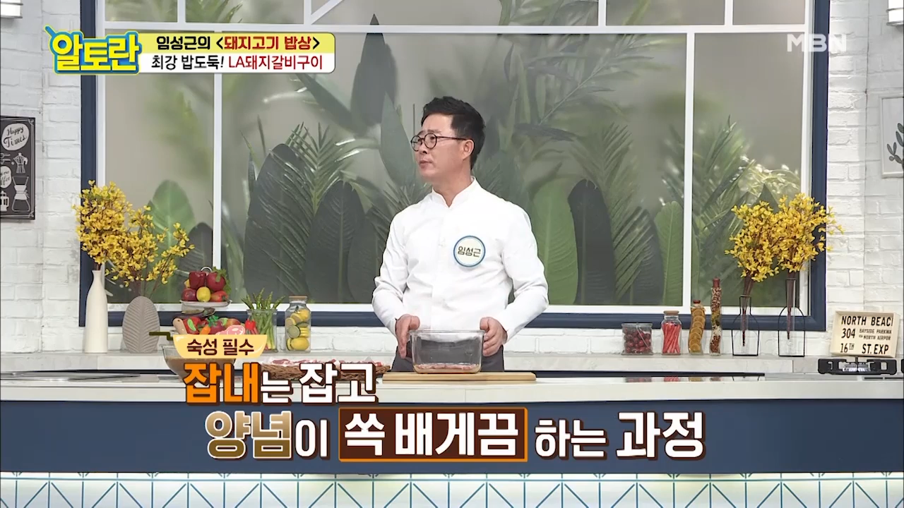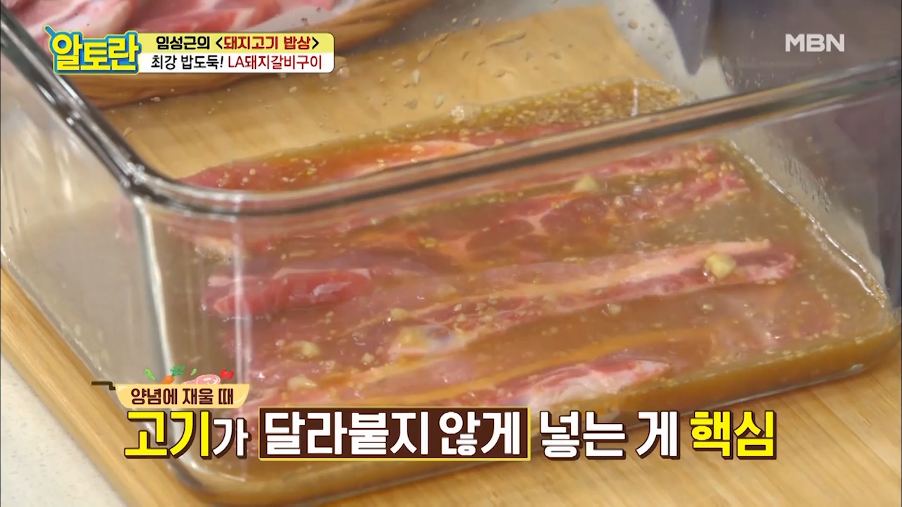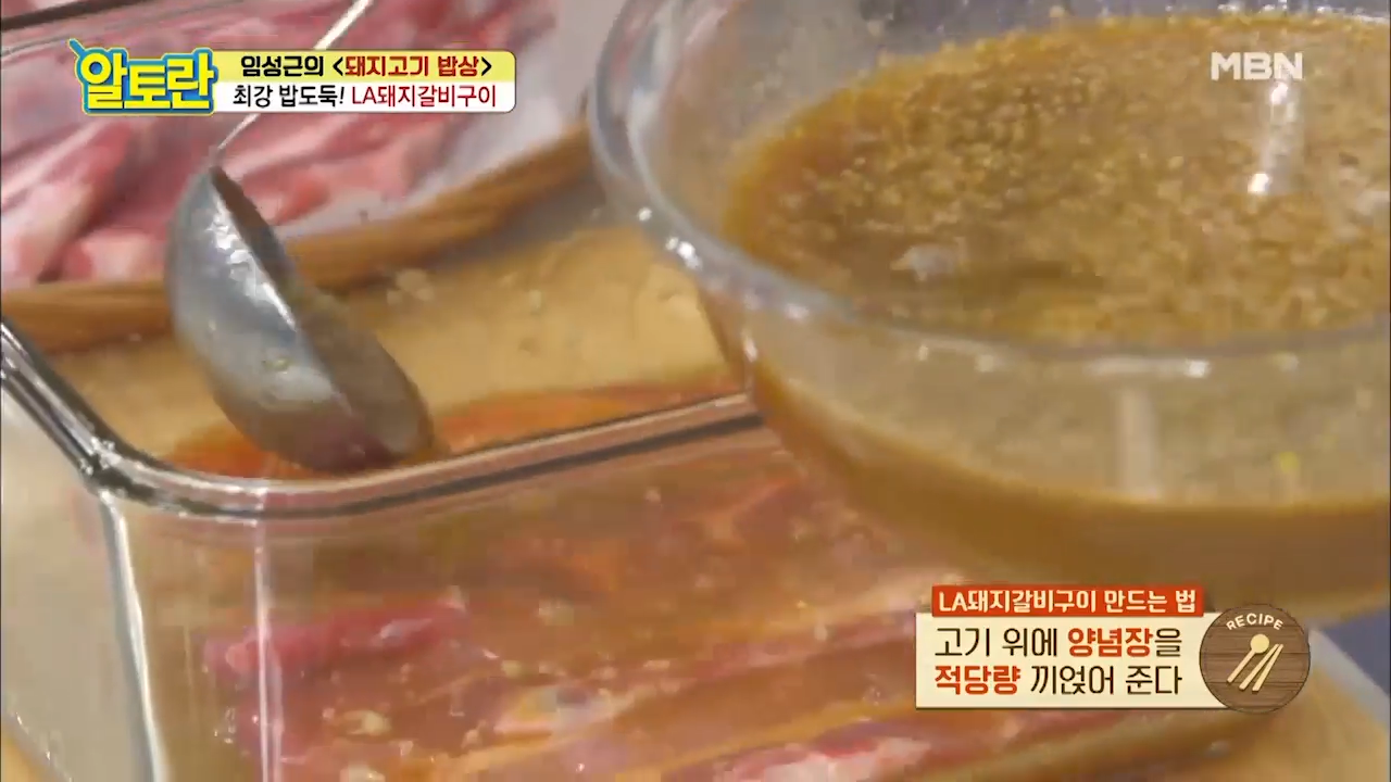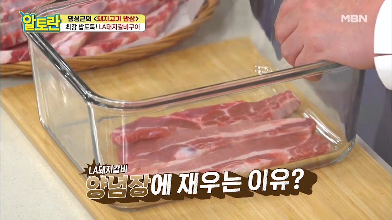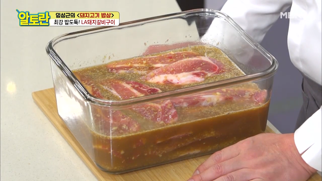 보기에도 아주 잘 재워진 것 같죠? 24시간 숙성한 LA돼지갈비로 이대로 굽기만 하면 아주 맛있는 LA갈비구이를 먹을 수 있습니다. 한식대첩 우승자인 진정한 한식의 고수 임성근 조리기능장님의 LA돼지갈비 재는법 & 맛있게 굽는 비법 시작합니다. ^^