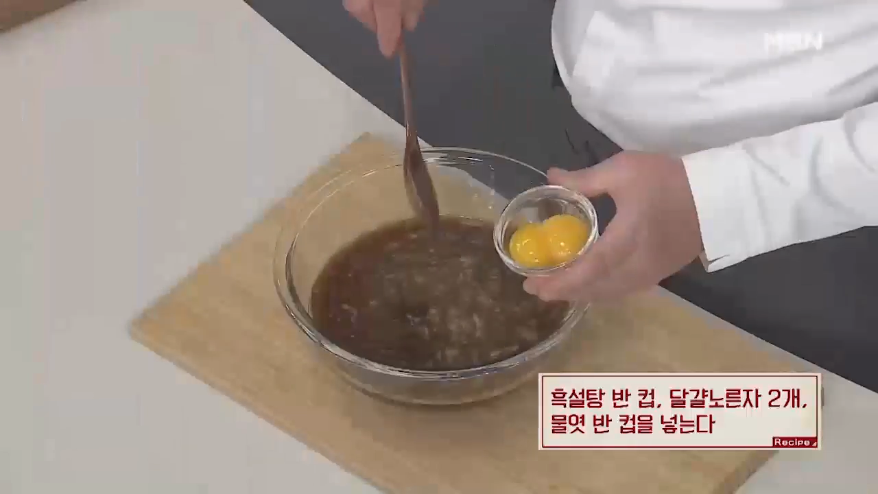 ④ 흑설탕, 달걀노른자, 물엿 넣기