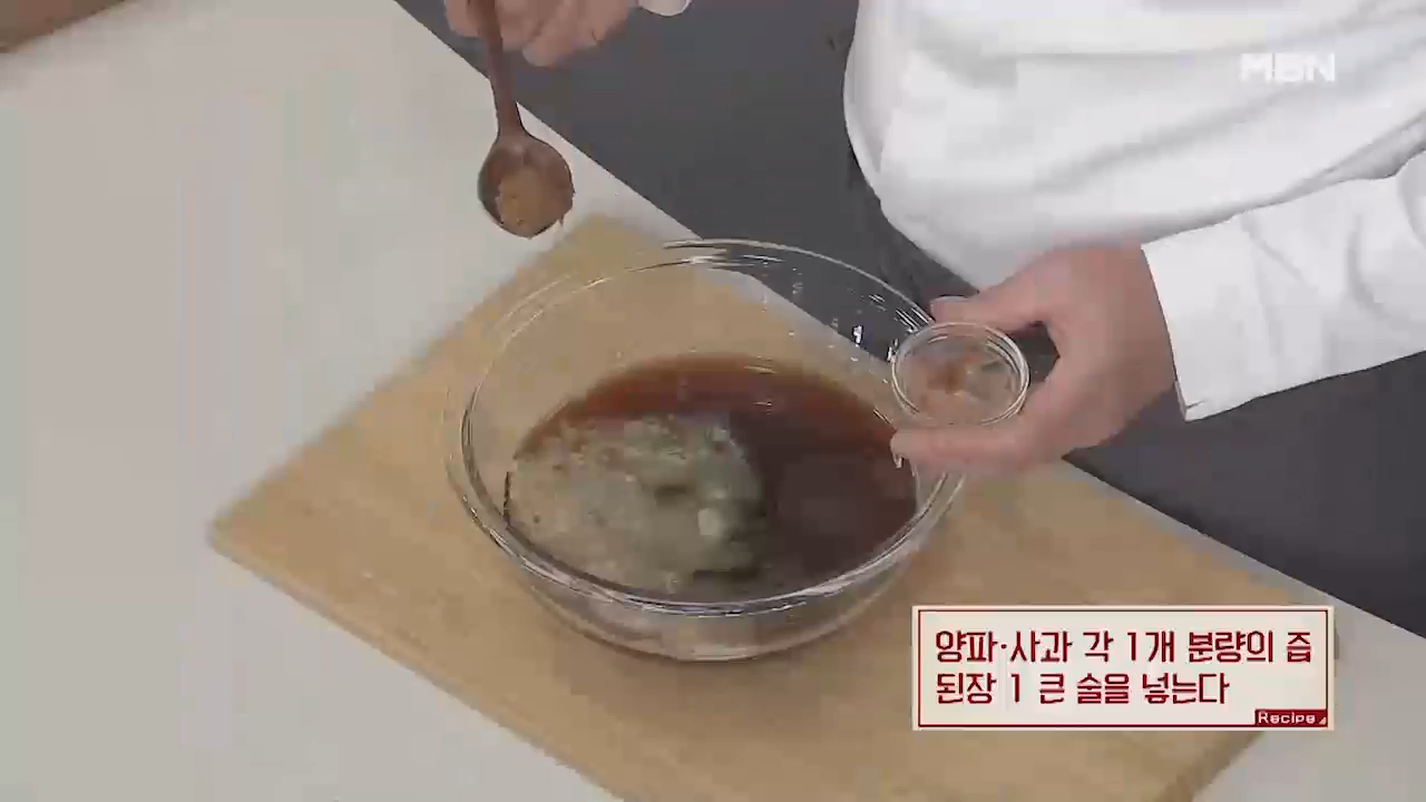 ▶사과 1개 분량의 즙을 넣어줍니다.