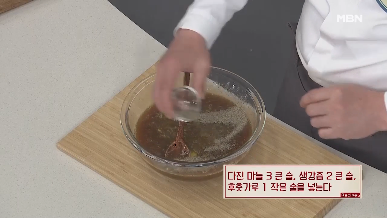 ⑤ 다진 마늘, 생강즙 2큰술, 후춧가루 1 작은술을 넣어 줍니다.