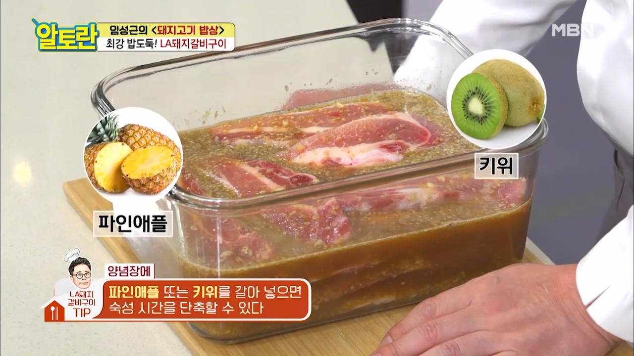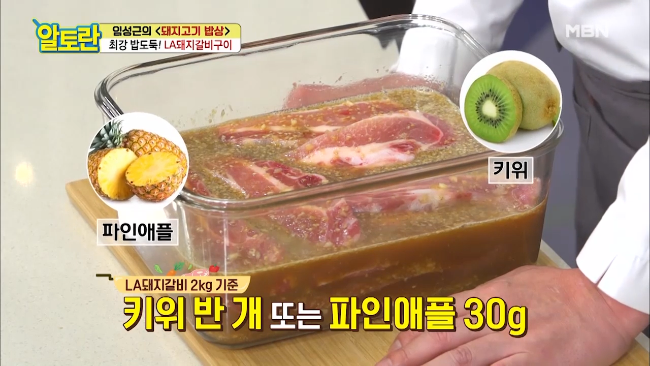 ※LA돼지갈비 2kg 기준 키위 반 개 또는 파인애플 30g을 넣어줍니다.