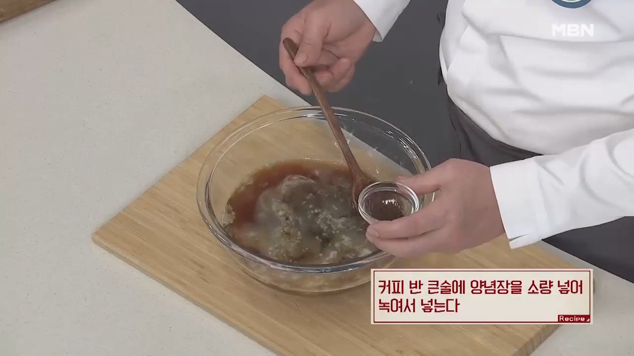 ▶커피 반 큰 술은 양념장을 소량 넣고 녹여서 넣어 줍니다.