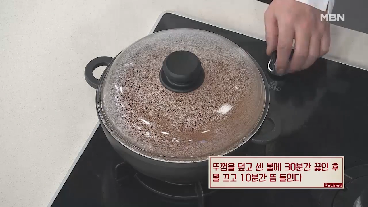 ▶뚜껑을 닫고 30분간 끓인 후 불을 끄고 10분간 뜸을 들여 줍니다.