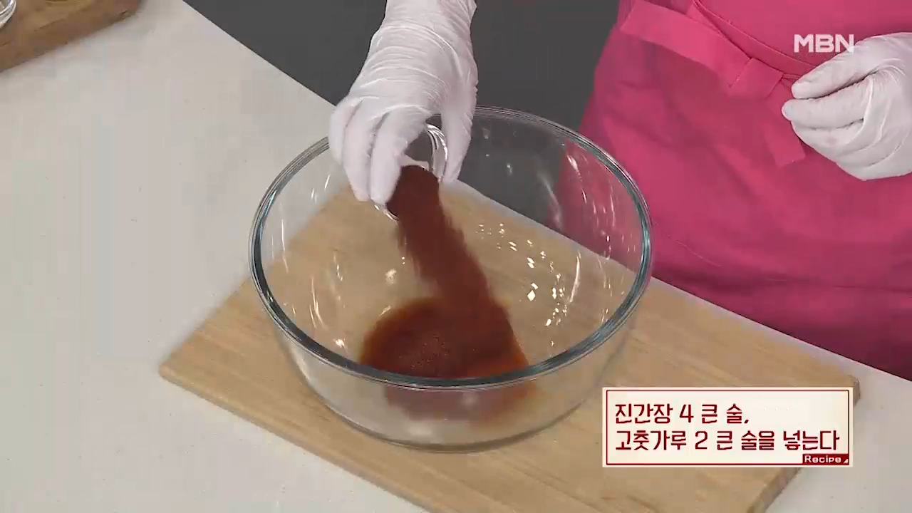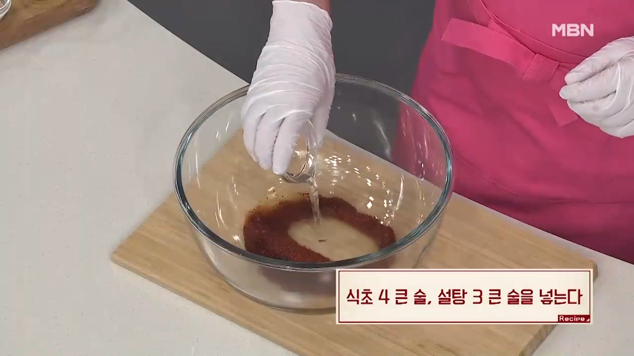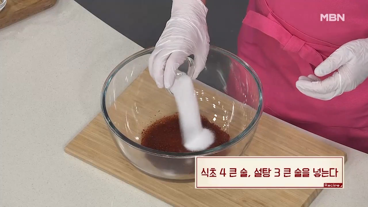 ② 간장, 고춧가루, 식초, 설탕 넣기