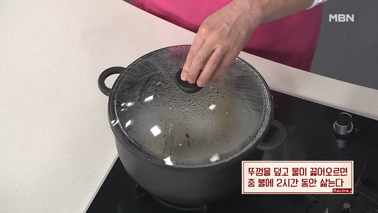 ▶뚜껑을 덮고 물이 끓어오르면 중 불에 2시간 동안 삶아줍니다.