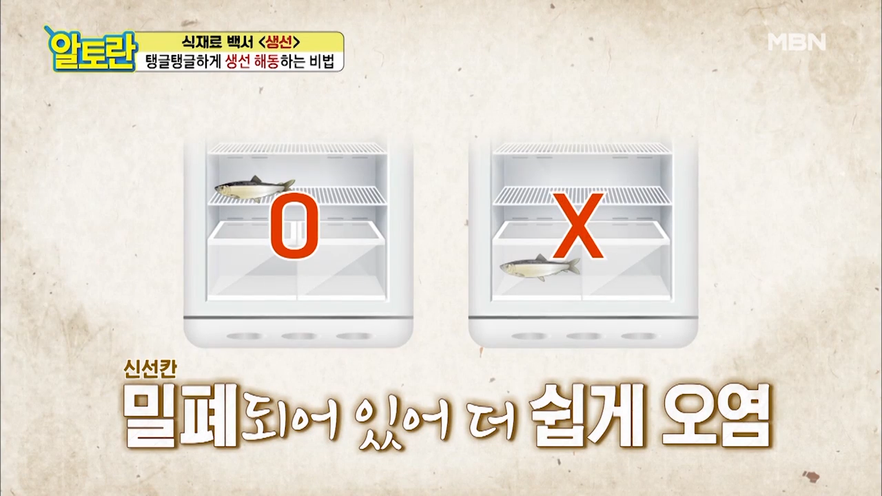 알토란에서 소개하는 생선을 오랫동안 보관할 수 있는 방법입니다. ^^ 1. 첫 번째 생선 보관 법 ※생물 생선 : 얼리지 않고 싱싱하게 냉장 보관하여 판매하는 생선 ※생선에 소금, 식초물 넣어 밑�
