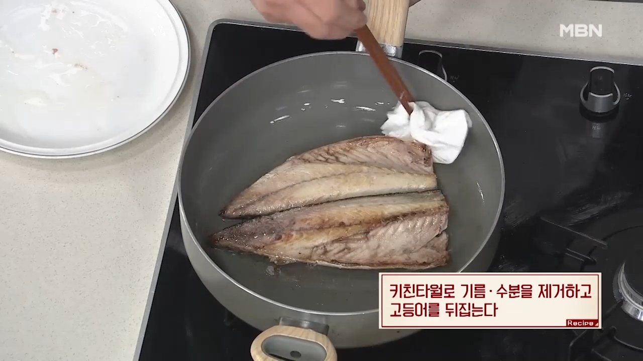 ※바삭한 고등어구이를 위해 수분으로 기름을 꼭 제거해 줍니다.