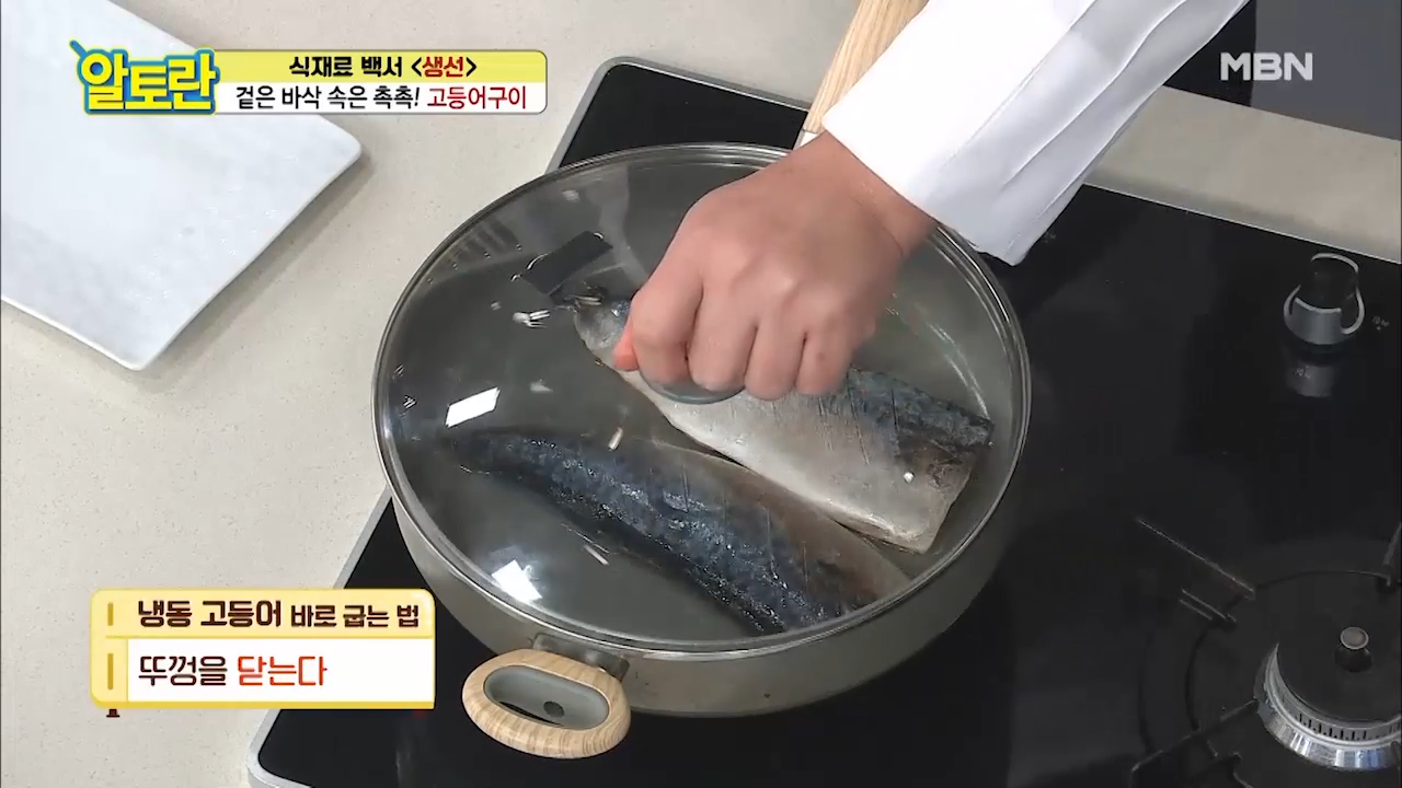 ※뚜껑을 닫고 구우면 해동을 하면서 동시에 고등어를 익힐 수 있습니다.