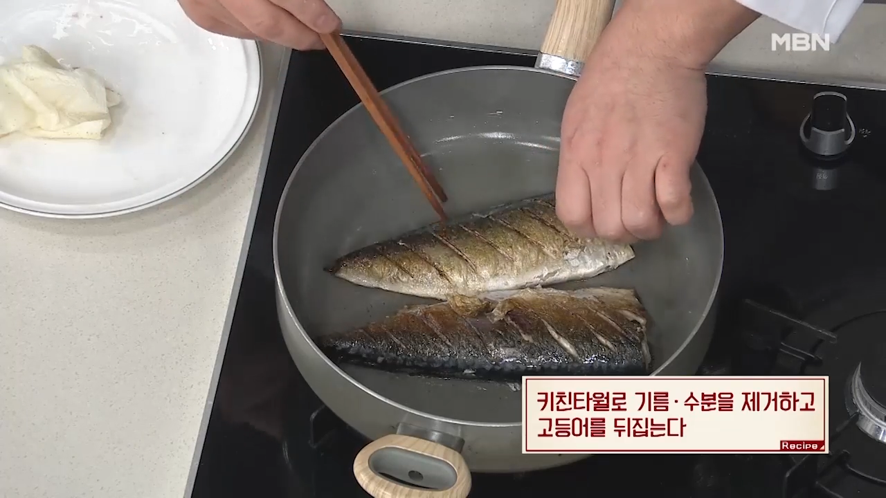 ※기름과 수분을 제거하지 않으면 바삭하게 익지 않고 고등어찜처럼 될 수 도 있습니다.