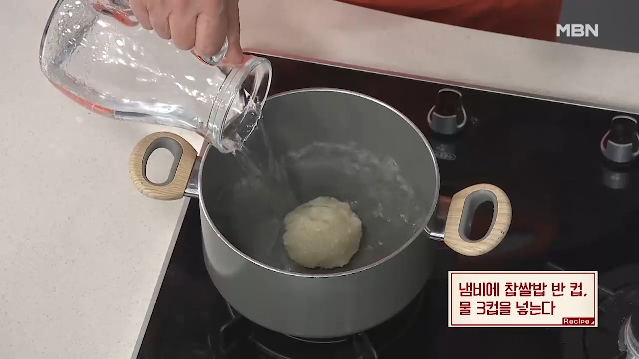 ▶찹쌀 풀국 1컵을 넣어줍니다.