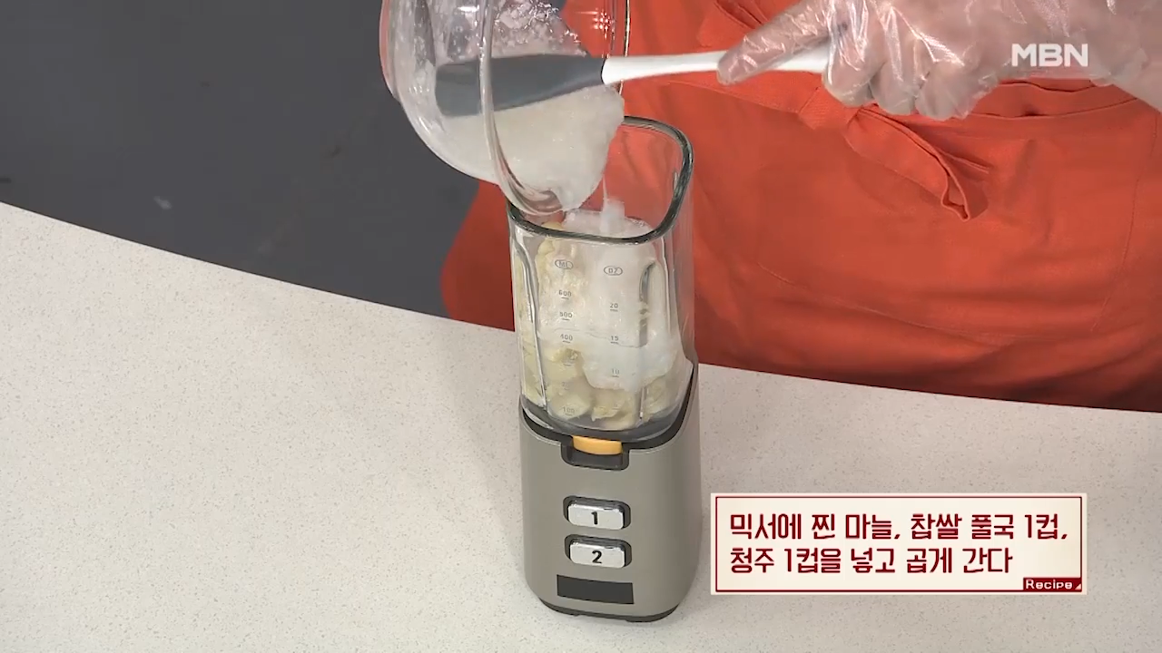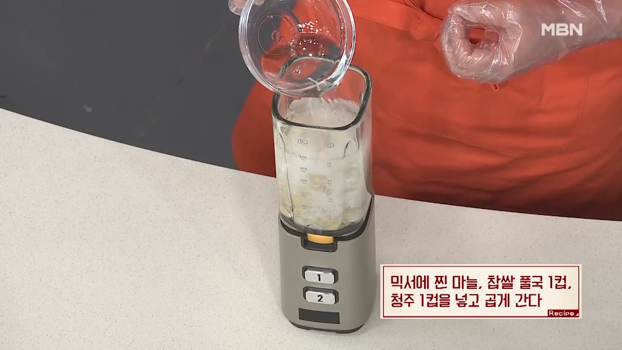 3. 청주, 찐 마늘, 찹쌀 풀국 넣기