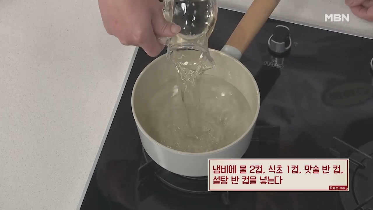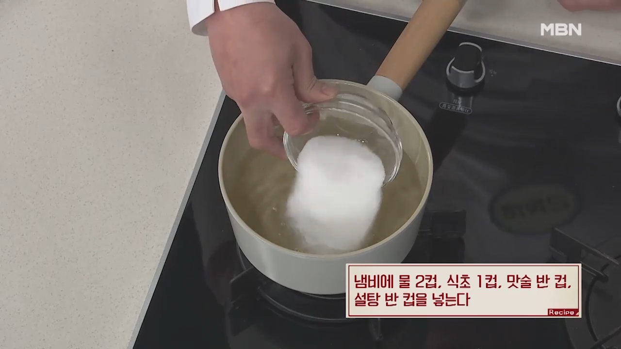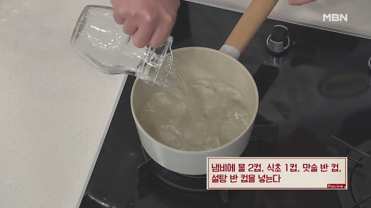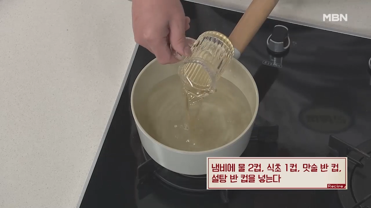 ① 물, 식초, 맛술, 설탕 넣기