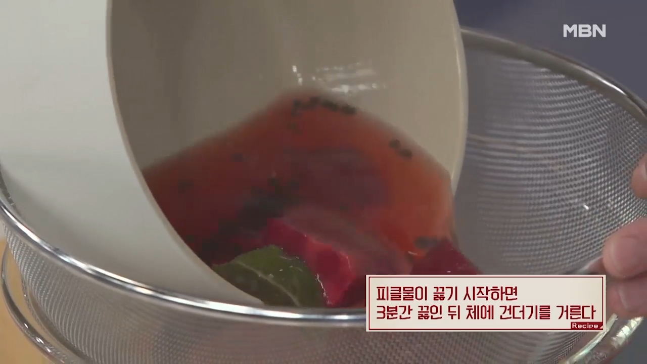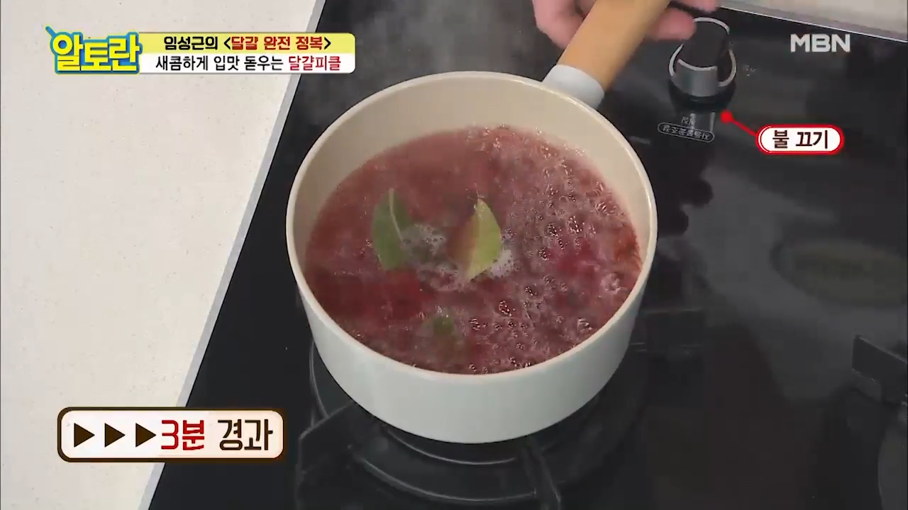 ※피클물을 3분간 끓이는 이유는 3분 정도 끓여야 강한 시초의 향을 날리고 부드러운 맛을 낼 수 있기 때문입니다.