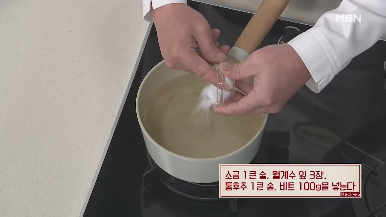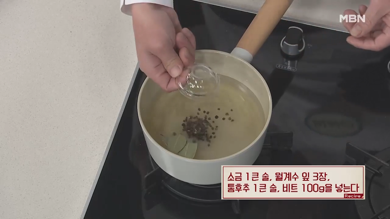 ② 소금, 월계수, 통후추, 비트 넣기
