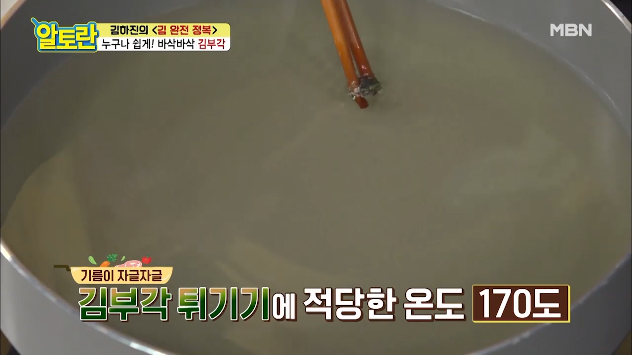 ※김부각을 튀기기에 적당한 온도는 170도입니다.