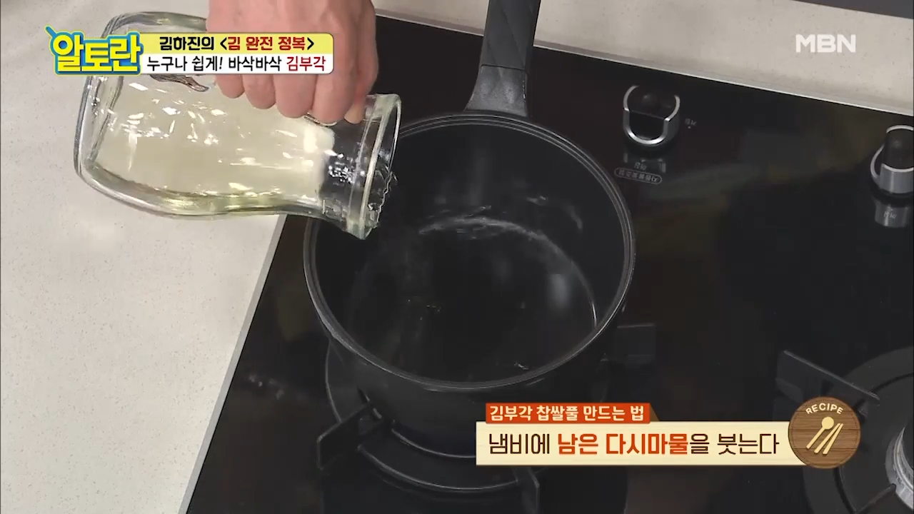 ※다시마물을 넣는 이유는 찹쌀풀을 쑬 때 다시마물을 사용하면 감칠맛을 올리고 김의 맛을 잘 살려 줍니다.