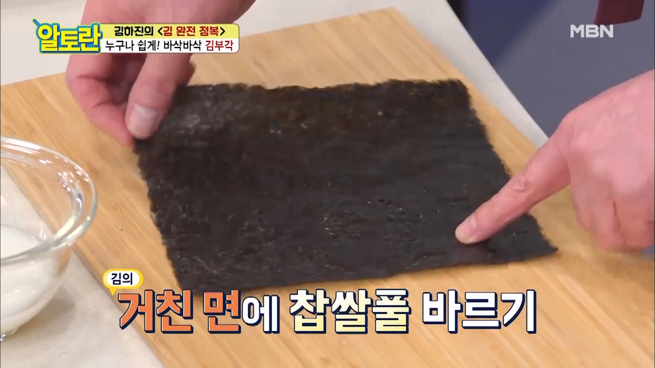 ※김밥용 김에는 거친 면과 매끈한 면이 있으며 찹쌀풀은 김의 거친 면에 발라줍니다.
