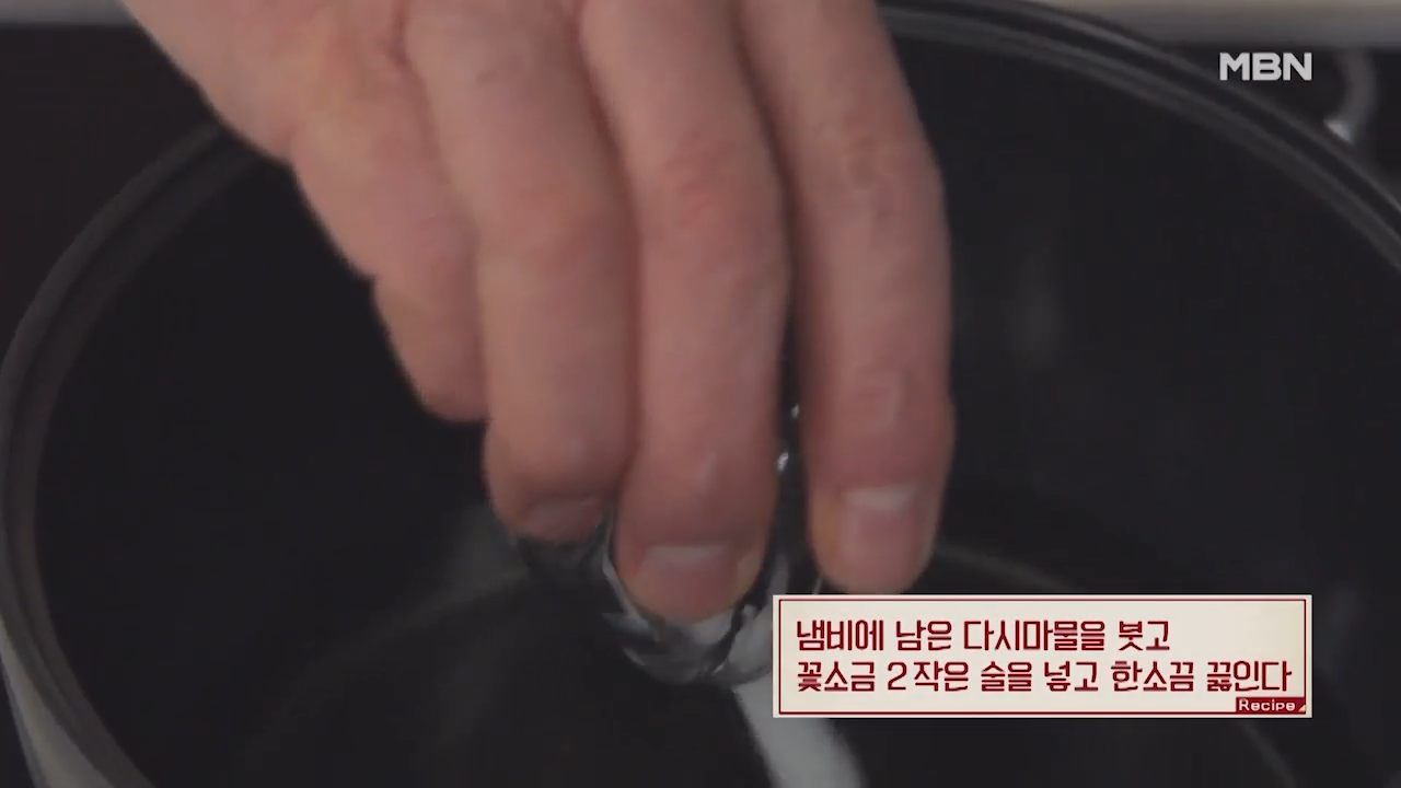 ▶꽃소금 2 작은 술을 넣고 한번 끓어오를 때(한소끔)까지 끓여줍니다.