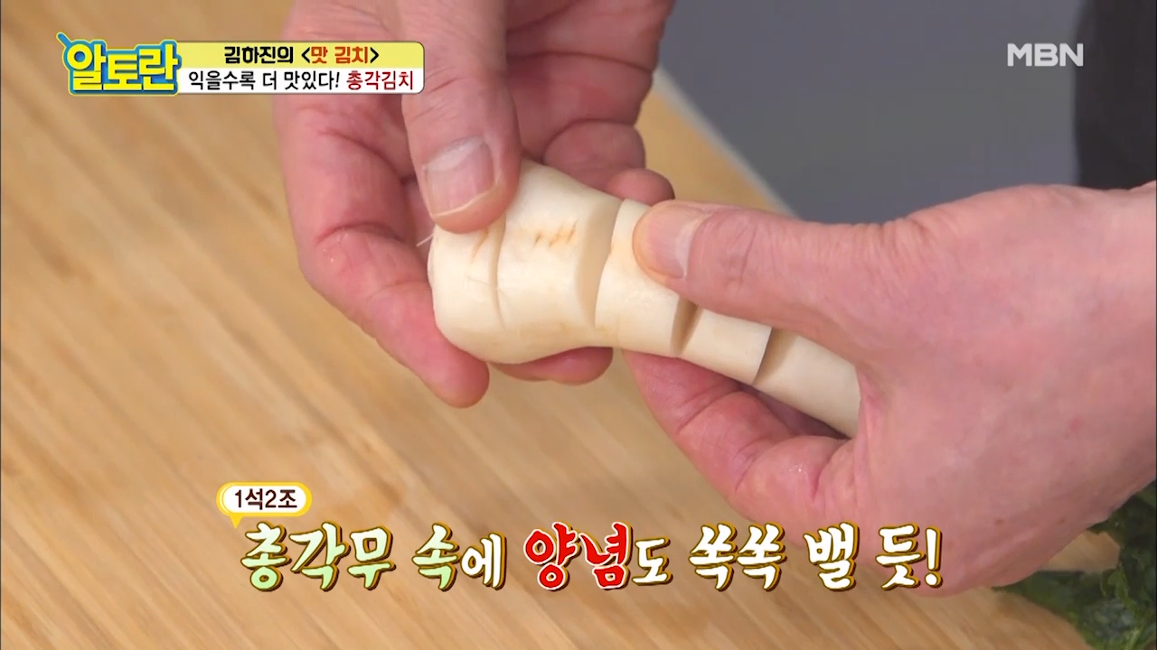 ※칼집을 넣으면 총각무 속까지 양념이 잘 배고 총각김치 숙성 기간이 단축됩니다.